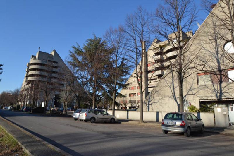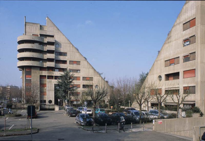 "Nel 1975 Ada Defez presenta il progetto per 3 torri residenziali da costruirsi nell’ambito della lottizzazione del comparto Morane. Il progetto, realizzato dalla Edilcoop di Crevalcore per conto della Galletti & C. Residenziale Parco della Resistenza, mostra il chiaro intento di svincolarsi da collaudate tipologie, configurando una serie di edifici fra i più originali ed innovativi del panorama architettonico della periferia modenese. Vengono previsti tre blocchi, due allineati in fregio a via Brescia, l’altro in posizione più arretrata. La scelta di volumi scalari con pianta ad L consente molteplici variazioni nel taglio degli alloggi. Il tentativo è infatti quello di reinterpretare la tipologia della torre, rifacendosi al noto tema delle “ville sovrapposte”. Gli appartamenti al piano terra, spesso organizzati come duplex, hanno infatti accesso e giardino indipendente. Altri appartamenti, posti all’estremità dei due bracci e collocati al primo livello, sono invece raggiungibili attraverso scale autonome, configurate come elementi espressivi. Nell’angolo interno si trovano invece gli elementi di risalita che conducono ai piani superiori: la caratteristica scala a pianta circolare che contiene l’ascensore diventa una sorta di cerniera fra i due bracci, mentre al piano terra due percorsi passanti consentono un comodo accesso da via Brescia. Rispetto al progetto iniziale del 1975 la variante del 1977 ha introdotto alcune modifiche, prima fra tutte l’eliminazione di una serie di logge circolari a sbalzo sullo spigolo esterno. I tre blocchi sono caratterizzati da un uso generalizzato del cemento a vista: le logge, le finestrature e gli oblò sono trattati come tagli fortemente espressivi. Il sapiente controllo del rapporto fra la forte immagine esterna e la complessa articolazione planimetrica interna, fa di questo progetto una delle più riuscite variazioni sul tema della megastruttura tanto in voga negli anni Settanta".