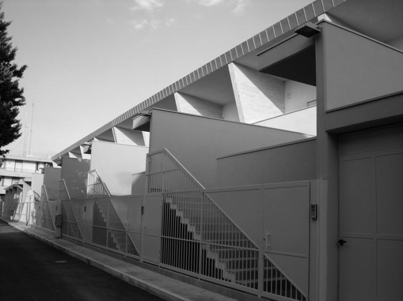 L’edificio, situato a Cerignola ai margini della città consolidata, in un territorio piatto, rappresenta un frammento di discontinuità. La modernità delle forme architettoniche proposte, espresse attraverso volumi semplici ed essenziali, dove pieni e vuoti con il solo ausilio della luce naturale definiscono in totale autonomia l’espressività dei luoghi, ambisce di fatto a proporsi come modello per l’edificato di completamento e di bordo che nel tempo disegnerà il nuovo perimetro di questo centro urbano. Siamo al cospetto di un organismo orientato per forma, per struttura e distribuzione, che guarda davanti, si “prospetta” sulla strada. Risulta vigorosa la relazione struttura-spazio orientato; gli spazi interni conducono sempre nella direzione dell’orientamento. Le unità abitative sono attraversate da luce naturale ottenuta da grandi vetrate. La zona giorno al piano rialzato è proiettata verso il giardino pensile da una vetrata. La zona notte al piano superiore è un piano attico che conclude l’edificio e lo completa. Nessuna cornice, nessuna modanatura, niente frivolezze o ingenuità formali, nessun orpello a giustificare o a mascherare e nascondere approssimazioni costruttive. Il dettaglio c’è ma non si vede, è un fatto tecnico e come tale interessa chi l’architettura la fa, non chi la fruisce. Chi abita assume un legame simbiotico con questo spazio-struttura, non quello ideologico dei valori imposti, ma quello del rigore, della dignità, della precisione, della semplicità, dell’arte del sottrarre tutto ciò che nulla aggiunge all’anima dei luoghi costruiti. Nessun avanguardismo, nessuna estetica del montaggio, nessuna concessione “modaiola”. Non vi è il tentativo di sedurre, quello che viene qui affrontato è l’architettura, le sue variabili, le sue qualità spaziali, le sue funzioni, le sue logiche rigorose per arrivare a produrre un manufatto informato prima di tutto ad un’etica del buon costruire, in grado di tracciare una volta ancora un solco profondo tra ciò che è definibile edilizia e ciò che appartiene indissolubilmente all’architettura.