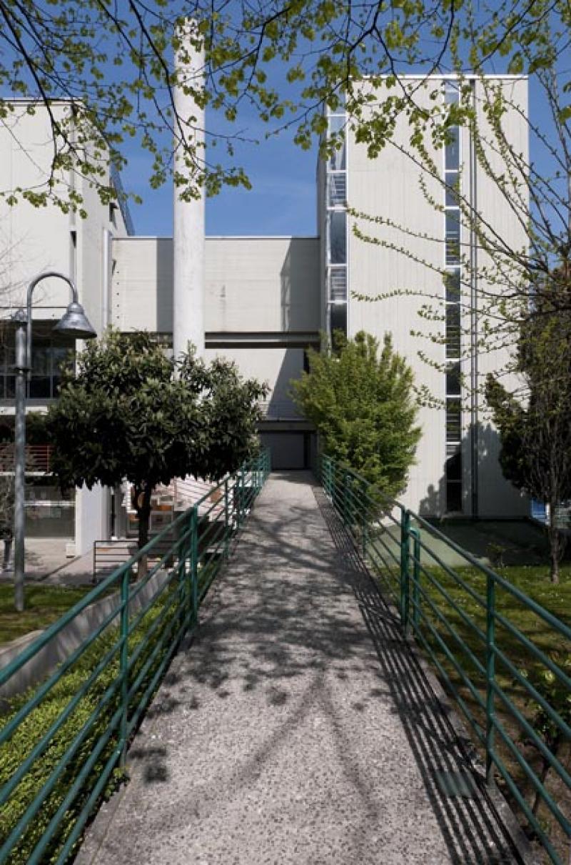 La totale assenza di apparati decorativi lascia il compito di costruire l’immagine del complesso: dall’“espressività” della sequenza spaziale, alla chiara struttura formale della pianta fino al trattamento del cemento armato a vista usato per tutte le superfici. In quest’ultimo dettaglio sembra potersi riconoscere l’eco del maestro americano Louis Khan.