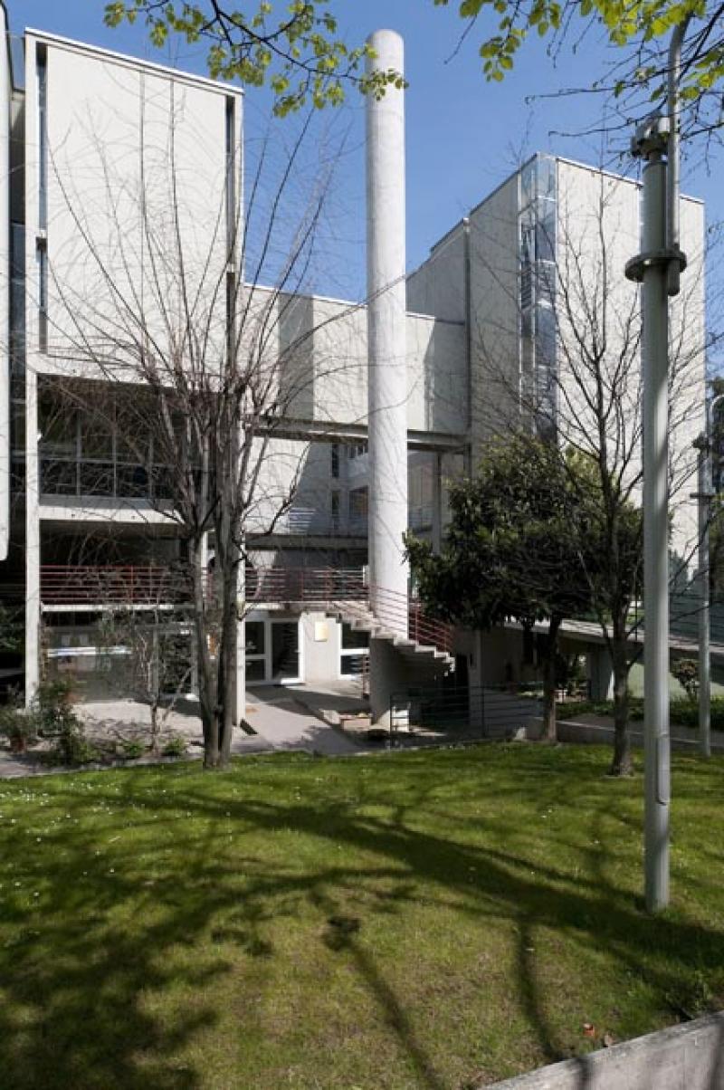 Fin dalle prime fasi progettuali emerge l’idea di un’unità formale dei vari edifici che creano un organismo in cui le parti sono ben distinte in volumi autonomi caratterizzati da una evidente chiarezza formale. I vari blocchi sono collegati tra loro così come sono collegati alle vie di comunicazione e accesso del quartiere, tramite da passerelle aeree: tema caro all’architetto.