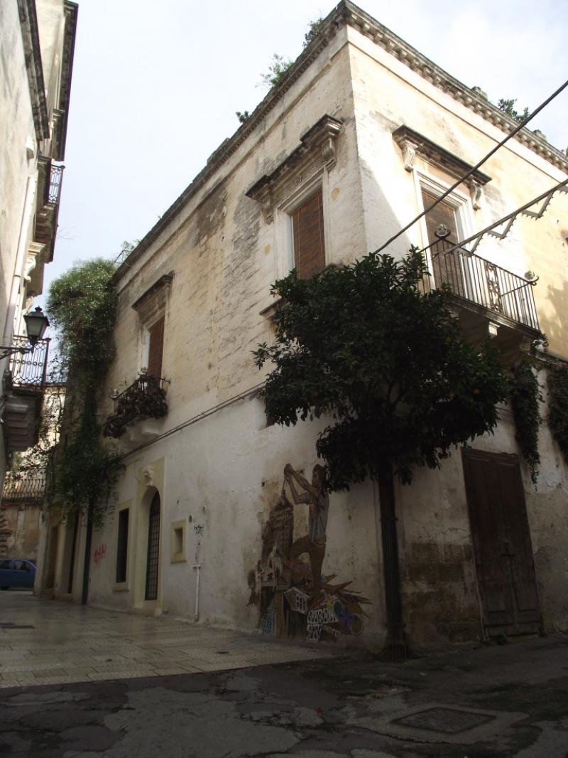 Casa Annicchiarico è un operazione di ristrutturazione all’interno del centro storico di un edificio cinquecentesco. Esternamente è caratterizzata dalla presenza dei “pomi” in ceramica sugli angoli delle ringhiere dei balconi, classici elementi grottagliesi di coronamento; altro elemento notevole è la presenza di protezioni in metallo alle piante di limone che giacciono sul bordo dell’edificio: questi elementi simulano la forma della pianta e si allargano nella parte finale, seguendo per un breve tratto l’andamento dei rami. A piano terra sono presenti una serie di stanze, caratterizzate da tappeti e affreschi dipinti alla maniera bizantina: la scelta di questa tecnica è legata al fatto che nell’agro grottagliese ci sono numerose grotte in cui monaci basiliani in fuga dall’iconoclastia raffigurarono immagini sacre. Su questo stesso piano sono inoltre presenti gli ambienti di lavoro dell’architetto: in pieno accordo con la definizione di artigiano che ricerca e lavora, il suo laboratorio è caratterizzato da strumenti per manipolare personalmente quelli che poi diventeranno gli elementi di arredo per le abitazioni che progetta. Il piano superiore ruota attorno a quello che era il “nucleo centrale dell’edificio, un tempo occupato da ambienti angusti, oggi demoliti”, da cui “è nato il patio, cuore pulsante della casa e polmone verde in cui vivere le ore più calde del giorno e della notte”. Qui sono presenti una serie di stanze, quali il salotto, lo studio, l’archivio dell’architetto e una scala di tufo con la battuta dei gradini in cotto antico, da cui si sale sino alla grande terrazza sul tetto, sul cui pavimento di calce Annicchiarico ha inserito un tappeto in ceramica. Non tutte le stanze sono intonacate: questo è nato sia da una necessità economica (l’intervento è datato agli inizi della carriera dell’architetto) sia per sfruttare contemporaneamente le qualità statiche ed estetiche del tufo.