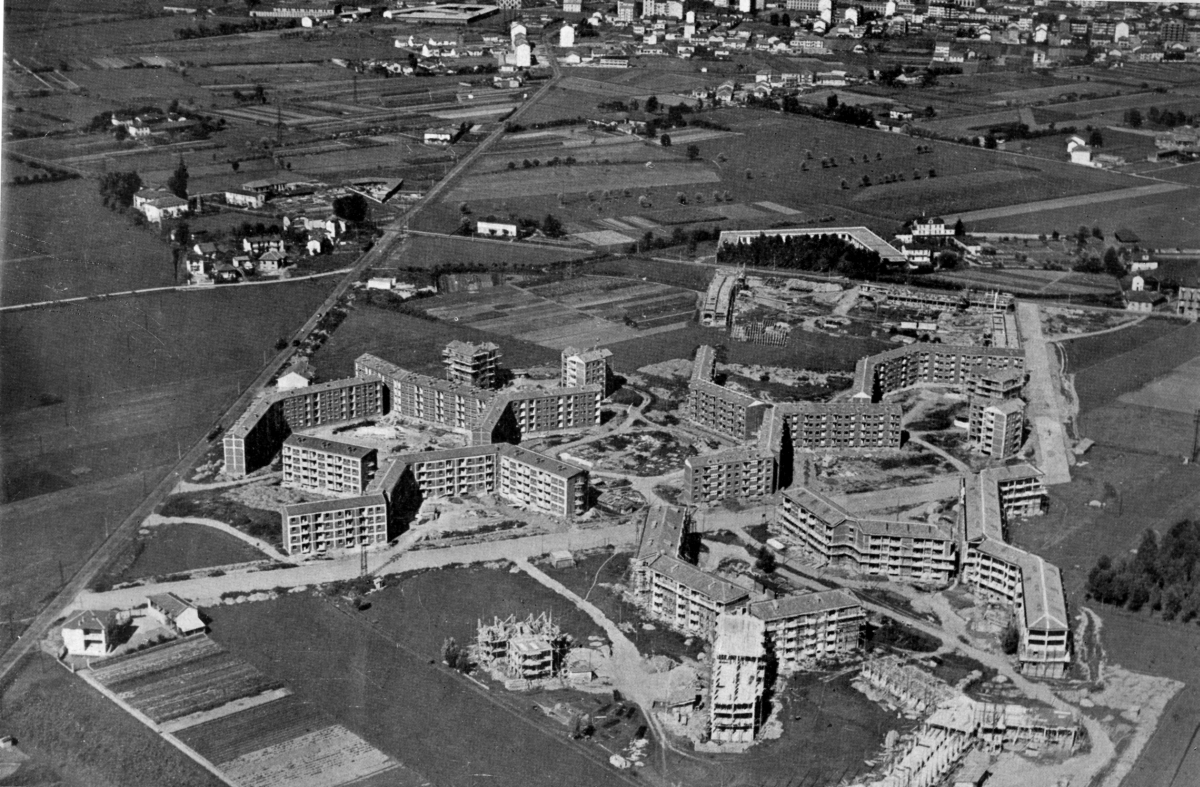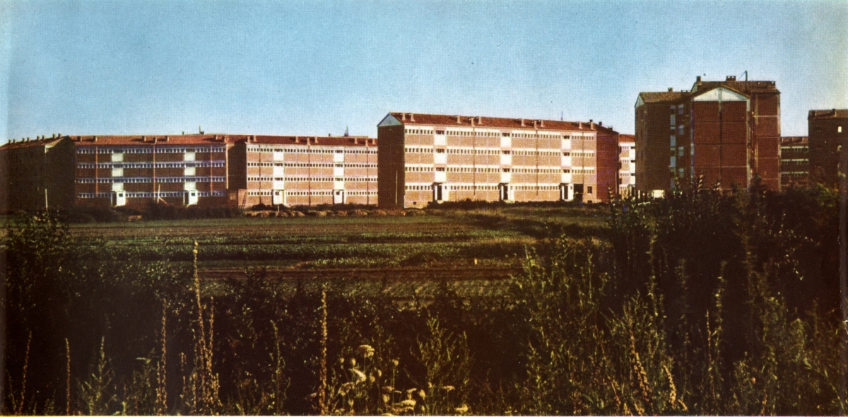 Nel 1953, nell’ambito di un programma di carattere nazionale che prevede l’assegnazione ai profughi del 15% delle abitazioni popolari edificate, a totale carico dello Stato, dagli Istituti Autonomi per le Case Popolari, il Comune di Torino dona allo Stato un’area nel periferico quartiere di Lucento. Qui sorgono i nuovi alloggi costruiti dall’Istituto Autonomo per le Case Popolari per mezzo di un finanziamento corrisposto dal Ministero dell’Interno: nasce il Villaggio di Santa Caterina, destinato ad accogliere i profughi fino ad allora alloggiati alle Casermette di borgo San Paolo. Nel 1954 inizia la costruzione del primo lotto, denominato SP1, che si estende su una superficie di 44.900 metri quadrati, all’interno della quale trovano spazio 516 alloggi, per un totale di 1.612 vani. I lavori terminano nel 1955 e tra l’agosto e il novembre dello stesso anno, 253 nuclei familiari, composti esclusivamente da individui che si trovano nella condizione di profugo, requisito necessario per ottenere l’assegnazione di un’abitazione, si trasferiscono a Lucento, seguiti, l’anno seuccessivo, da altre 100 famiglie. Nel 1959 il lotto SP1 è al centro di un progetto di ampliamento che prevede la realizzazione di altri due fabbricati, raggiungendo le attuali dimensioni di undici fabbricati divisi in due lotti.