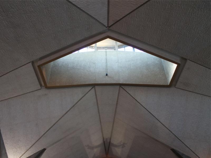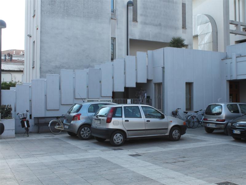 Il progetto iniziale prevedeva tre “chiese”: la prima rappresentata dalla cripta a piano terra per le celebrazioni nei giorni feriali, la seconda, un ampio spazio di 1160 mq. (con un altare quasi centrale) destinata a funzionare nelle giornate festive e nelle principali solennità, da collegare alla prima nel periodo estivo per ospitare i numerosi turisti. Infine, le opere parrocchiali, concepite al piano terra, al di sotto del piano di calpestio della chiesa. Nel progetto era prevista un’ampia galleria (sicuramente ispirata dalla chiesa dell’Autostrada di Michelucci) sviluppata lungo l’asse longitudinale, che doveva servire per accogliere i fedeli prima di accedere alla cripta.