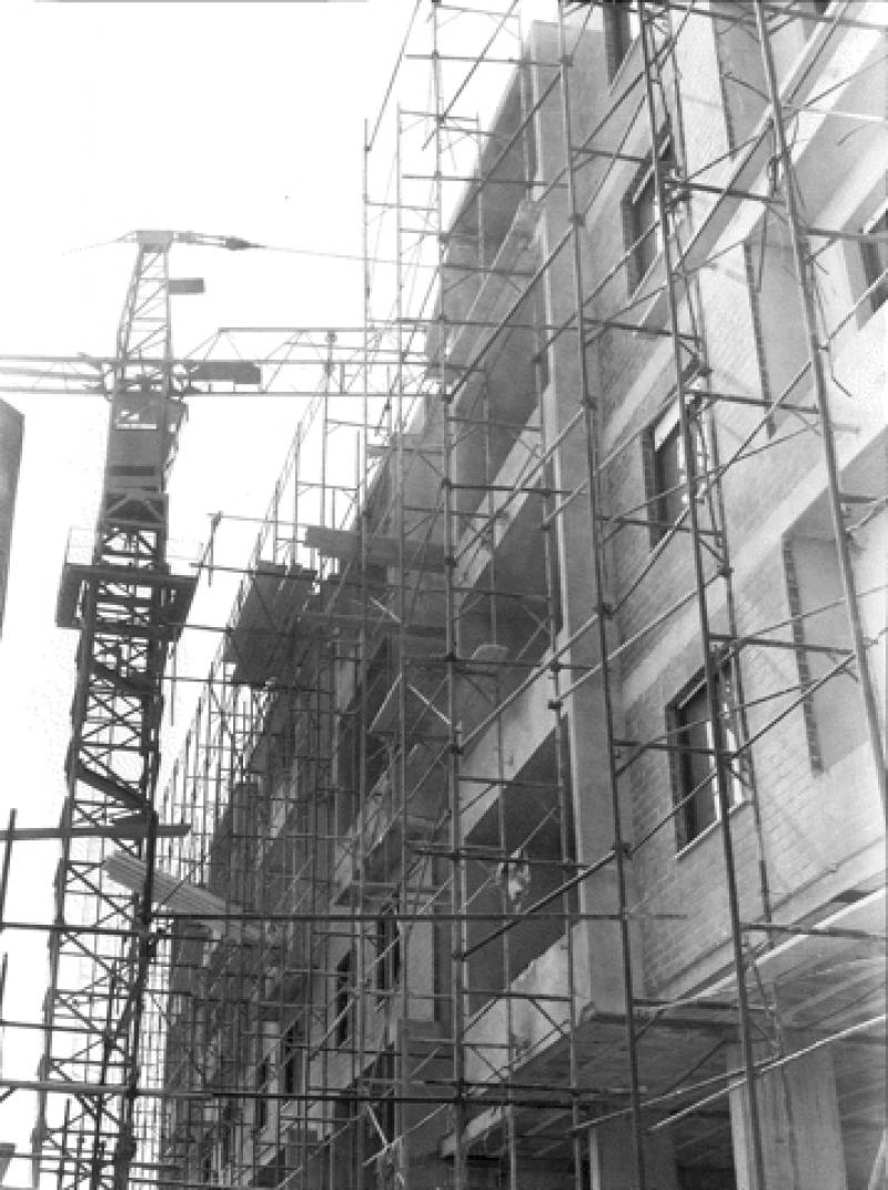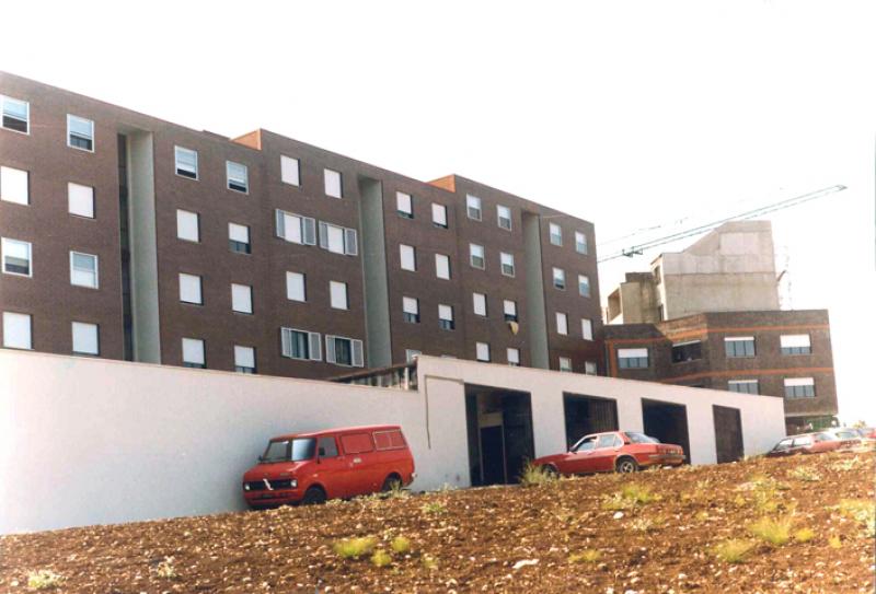 Proprio l'enorme differenza di quota ha determinato la scelta di differenti tipologie di appartamento, infatti si hanno appartamenti simplex, duplex inclusi nei differenti edifici residenziali che perimetrano il lotto, mentre nel mezzo compaiono addirittura case a schiera alle quali si accede tramite un corridoio di distribuzione coperto. Al fine di minimizzare i dislivelli, nel mezzo della lottizzazione una "piastra" contenente i garage, diventa la tempo stesso uno spazio all'aperto. Nella giunzione dei fabbricati che affacciano su via Puglia una scala aperta collega la "piastra" retrostante all'antistante quota stradale. La lottizzazione si compone esteticamente di differenti edifici caratterizzati sempre da un sapiente gioco di pieni e vuoti. Nell'angolo ovest, sono due gli elementi che si contraddistinguono per forma, il corpo scala e un corridoio di distribuzione posto in sommità.