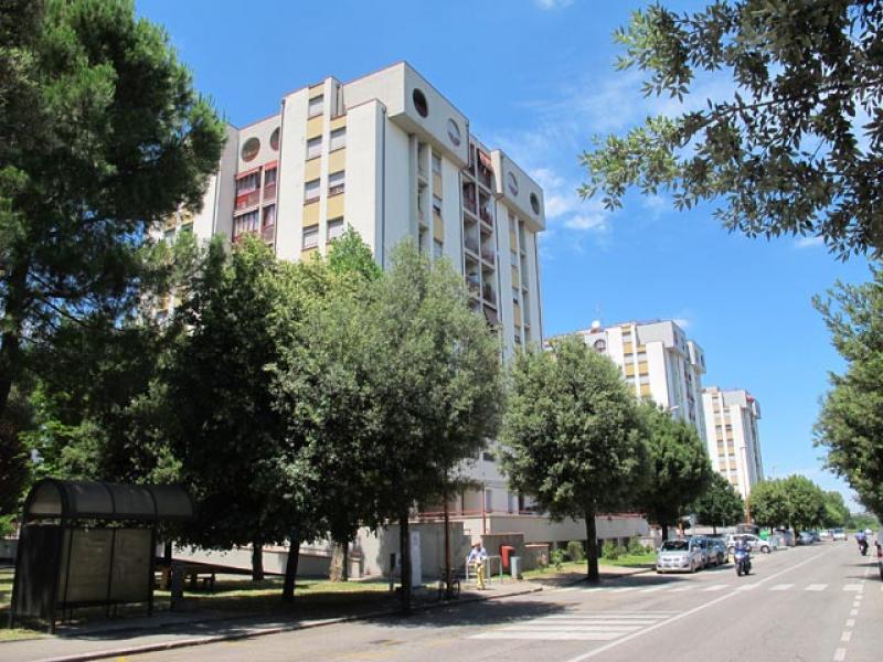 In particolar modo le torri conferiscono l’immagine riconoscibile del quartiere. Impostate su un basamento che copre i volumi interrati destinati alle autorimesse, i tre volumi sono definiti da volumi compatti, coronati in sommità da un piano in cui le forature a oblò sul cemento armato a vista, rimandano a un tema formale caratterizzante l’architettura della grande dimensione.