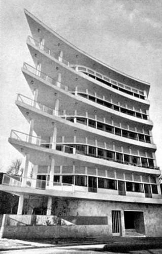 La più nota palazzina viene comunemente chiamata la nave per il profilo a punta dei balconi, che seguendo con un gesto liberatorio la curva della strada, così come i muri perimetrali, restituisce all’edificio le sembianze della prua di una nave e dona eleganza e leggerezza all’intero volume. L’organicità e la plasticità del complesso, risiedono oltre che nella dinamicità di pieni e vuoti, anche nel richiamo all'immagine di una nave che sta per discostarsi dall'edilizia circostante: questo rimando è riconoscibile anche in altri dettagli, come i pilastri tondi che ricordano gli alberi maestri, oppure lo spigolo del piano terra che richiama i rostri delle antiche navi da battaglia.