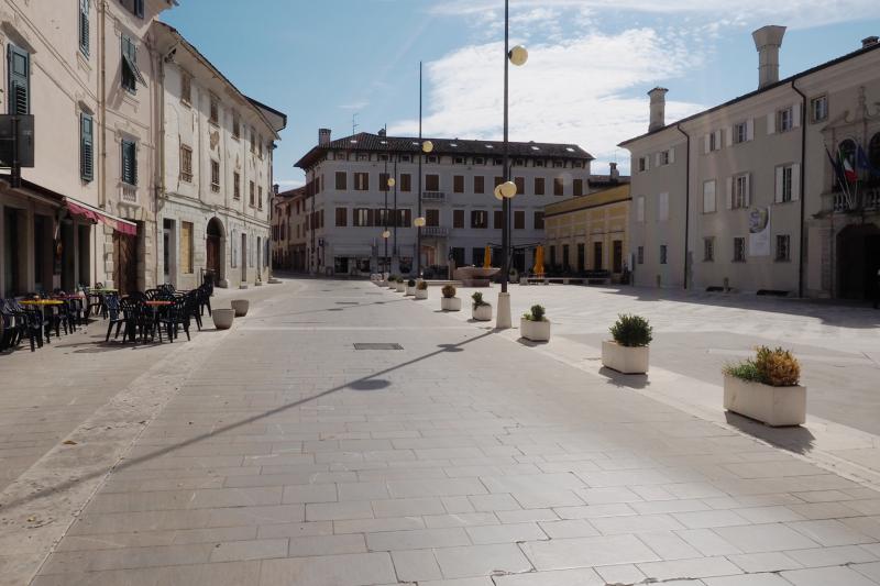 Pur partendo dalla ristrutturazione della piazza principale utilizzata prima come grande parcheggio, l'architetto Boris Podrecca individua a Cormons una serie d’interventi puntuali nel centro storico, fino alla Centa di Sant’Adalberto e le nuove gradinate del duomo. Una volta individuati i nuovi perimetri carrabili nella planimetria della piazza, Podrecca definisce tutta una nuova serie di limiti e spazi adiacenti ai palazzi e emergenze decorative come fontane, statue, panchine, lampioni.