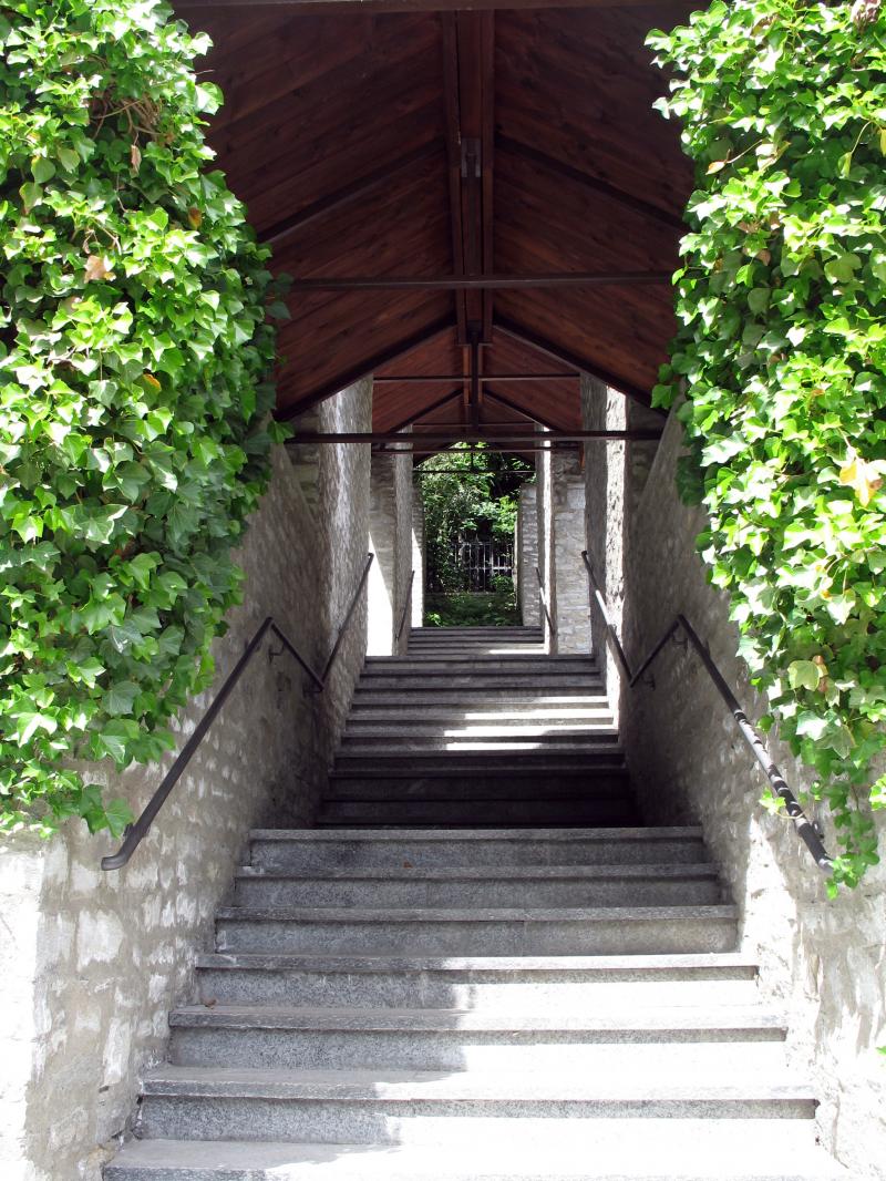 Si è venuto così a creare un ambiente raccolto, fatto di collegamenti coperti che permettono di salire lungo la massima pendenza e di passaggi distributivi che seguono le curve di livello consentendo l’accesso alle tombe.
