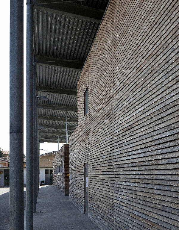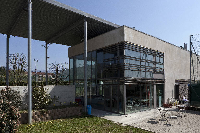 Nella struttura comunale gestita da una storica associazione polisportiva di Olgiate, il lungo corpo progettato da "Studio LFL" per ospitare i servizi a corredo delle attività sportive, si propone come elemento riconoscibile nel rarefatto paesaggio urbanizzato del paese in un'area in via di riqualificazione. Il centro polisportivo, d'altra parte, è da anni un riferimento urbano e sociale di rilievo per l'area stessa, che merita un avanzamento nell'immagine urbana.