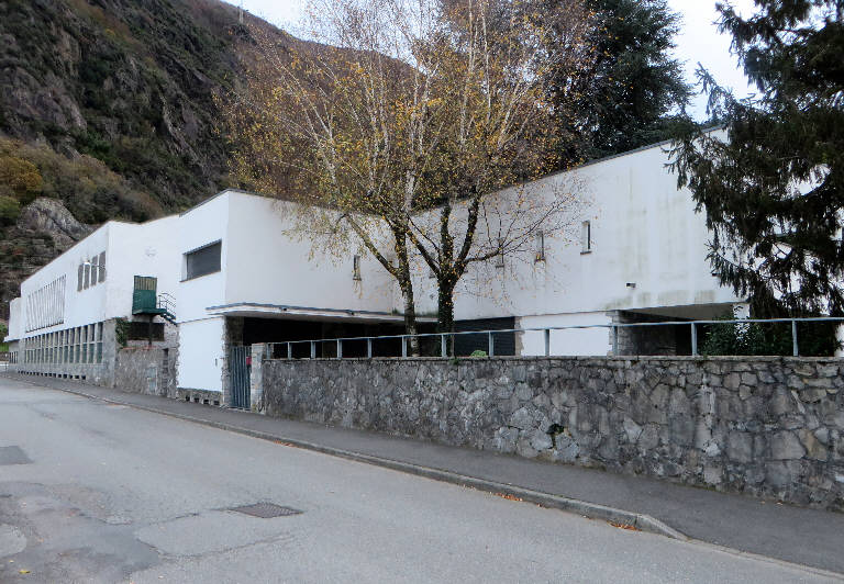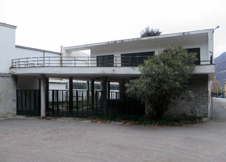 Enrico Griffini (Venezia,1887 - Milano,1952) si laurea in ingegneria industriale elettrotecnica nel 1910 presso il Regio Istituto tecnico superiore di Milano (poi Politecnico), ma ben presto si dedica all'architettura, sia come docente che come progettista a livello italiano ed europeo, anche ricoprendo incarichi nell'ambito del Sindacato fascista degli architetti. Attivo nel campo della progettazione razionale della residenza sociale e autore di una fondamentale manualistica a questa connessa, Griffini intrattenne anche rapporti professionali con importanti industrie a livello europeo; in particolare con la società Redaelli per la quale, tra il 1940 e il 1950, realizza una serie di edifici di servizio nelle sedi di Dervio e Rogoredo. La Redaelli è stata una importante presenza produttiva in Dervio per alcuni decenni a partire dagli anni '80 dell'Ottocento. Trattandosi di industria siderurgica, la sua collocazione fu all'origine determinata dalla presenza di una sorgente d'acqua, indispensabile per la tempera dell'acciaio. Oggi il complesso è una delle sedi della Meccanica Alto Lario, ma non tutti gli spazi sembrano utilizzati.