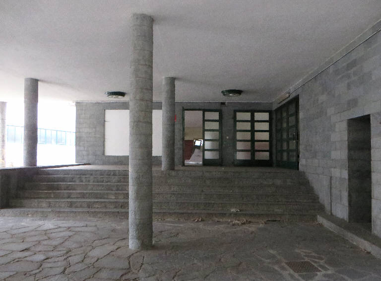 Pure nelle ristrettezze dei materiali "autarchici" disponibili in tempo di guerra, l'opera attinge a un carattere totalmente moderno, per l'asciuttezza delle forme, la geometria rigorosa e la leggibilità delle parti funzionali. La limitata disponibilità di ferro che inibiva l'impiego del cemento armato viene aggirata con la realizzazione di colonne in pietra che impreziosiscono il semplice paramento a intonaco; l'ampia campata di copertura a volta, realizzata in laterocemento - come le solette - non rinuncia all'impronta moderna (che l'impiego del tetto a falde con tecnica tradizionale, per esempio, avrebbe radicalmente contaminato).