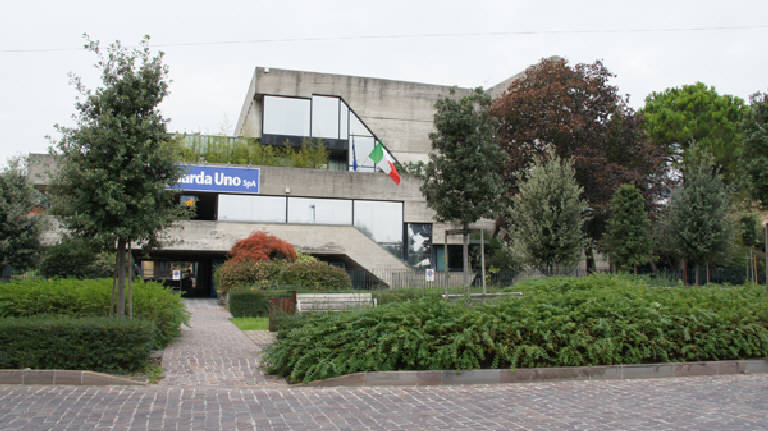 Maurizio Betta propone anche in questa opera la sua ricerca neobrutalista che lo porta a sperimentare le potenzialità espressive del cemento, utilizzato in maniera plastica a partire dalla fine degli anni '70 ( come ad esempio nel complesso Mirgarda a Desenzano). Oggi l'edificio, costruito nel 1990, è sede del Consorzio GARDA UNO spa.