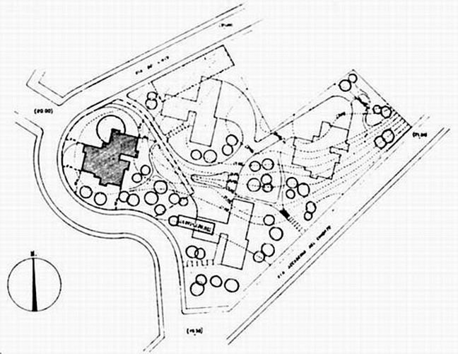 I villini plurifamiliari realizzati per l'Istituto Previdenziale Giornalisti e destinati ai soci della Cooperativa vedono impegnato lo studio Calini e Montuori sia nella progettazione del piano particolareggiato di zona che nella realizzazione architettonica del complesso.