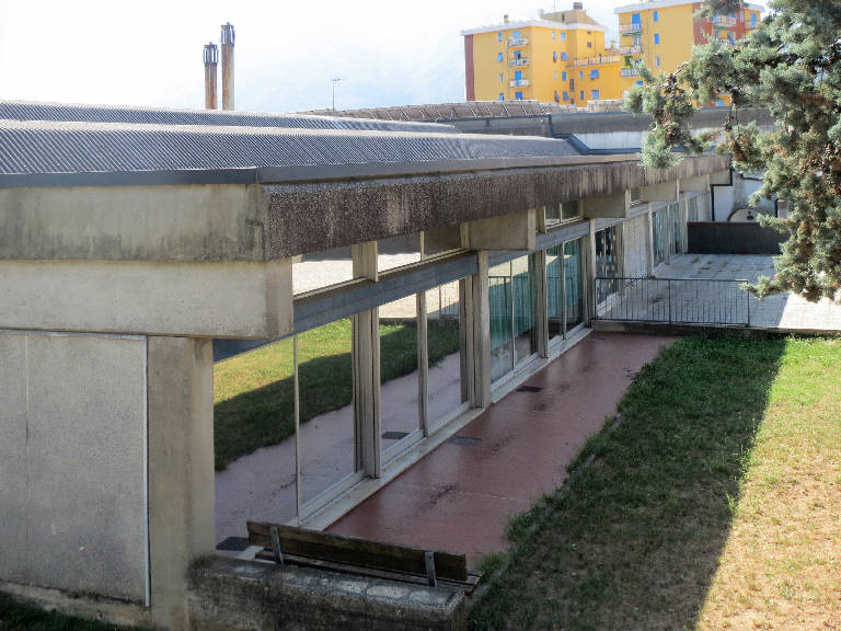 Il corpo di fabbrica, ad un solo piano su livelli diversi, segue la pendenza del terreno, stabilendosi sul lotto come una realtà in sé conclusa sebbene aperta alla città. Il forte spessore del corpo di fabbrica, vicino ai 30 metri comprese le parti di copertura, consente un buon rapporto parametrico tra superficie coperta e pareti esterne, con conseguente contenimento del costo a metro quadro. Gli spazi didattici sono improntati all'ottimizzazione dell'esposizione eliotermica e della flessibilità. Tutte le aule infatti sono affacciate sia a est che a ovest e tutte comunicano direttamente con il giardino mediante ampi serramenti scorrevoli. È inoltre prevista la loro aggregabilità mediante pareti anch'esse scorrevoli. L'illuminazione naturale è inoltre integrata mediante due alti lucernari continui posti al centro del corpo edificato, che caratterizzano fortemente anche l'aspetto dell'edificio richiamando l'immagine dello shed di tante architetture industriali, quasi a voler istituire una connessione visiva tra studio e lavoro, ovvero tra luogo in cui si apprende e luogo in cui si mettono a frutto le conoscenze acquisite.
