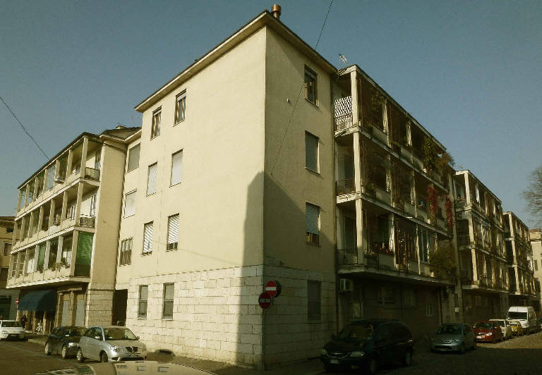 Gli edifici costruiti nel 1953 per il piano INA-Casa delimitano un isolato in una zona ancora nel centro cittadino, anche se marginale, in quanto poco distante dal tracciato ferroviario.