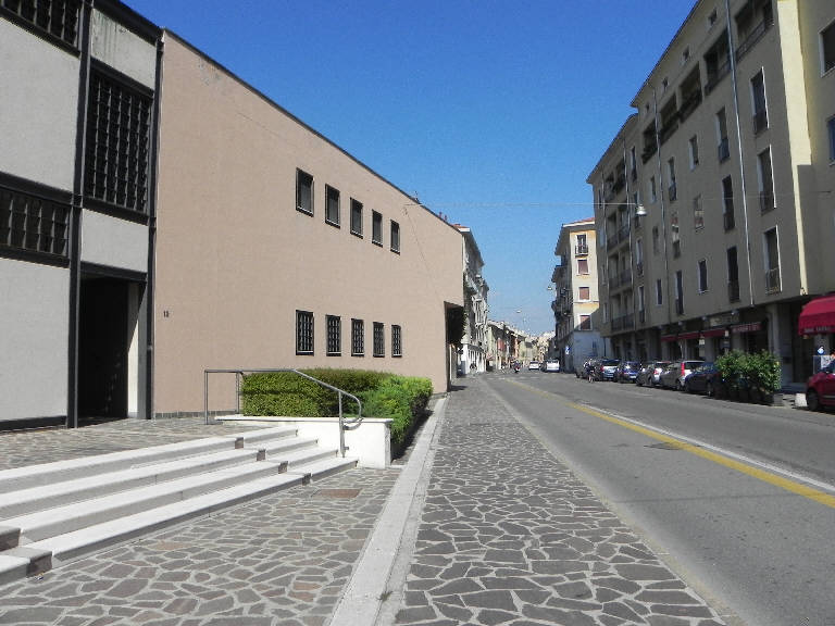 Il tracciato di via Dugoni, prolungamento di via Chiassi, sino a piazzale Gramsci, è previsto nel PRG del 1942: la nuova strada compromette parte delle strutture appartenenti alla congregazione religiosa, che affida nel 1987 a Dino Nicolini la ricostruzione del fronte verso via Dugoni. Con il suo controllato assetto compositivo la costruzione emerge dalla mediocrità del contesto urbano più prossimo.