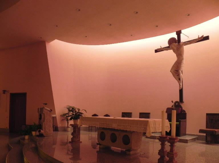 Lo spirito post-conciliare è tradotto in spazio architettonico, dove i fedeli si dispongono intorno all'altare e possono fruire di un coinvolgimento ottimale nella celebrazione liturgica, in prossimità del celebrante e dello stesso coro, cui è designato uno spazio specifico, ma non avulso dalla sala di preghiera.