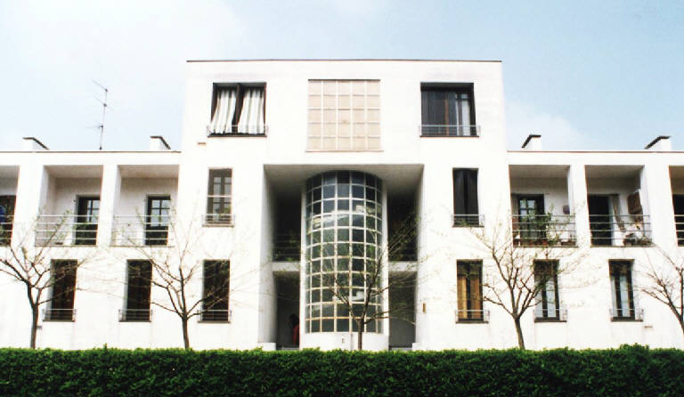 La lunga stecca di Maffeis invece riesce, seppure improntata ad un rigoroso disegno planimetrico, un lungo e stretto rettangolo, ad emergere visivamente dal contesto urbano mediante la successione di volumi puri. L'edificio su due piani presenta un fronte verso un parco pubblico, con il piano-terra scavato da un porticato sorretto da pilastri rettangolari, mentre i due piani superiori sono scanditi dalle finestre e dalle logge arretrate. In corrispondenza dei quattro corpi scala si innesta un piano supplementare, che emergendo dalla copertura spezza l'uniformità dello skyline. I corpi scala si affacciano verso il lato interno e si configurano come dei cilindri vetrati che emergono dall'arretramento delle facciate. Su questo lato tutta la composizione è ritmata dalle superfici candide delle murature e dalle vetrazioni a modulo quadrato che tamponano i corpi scala e le logge angolari.
