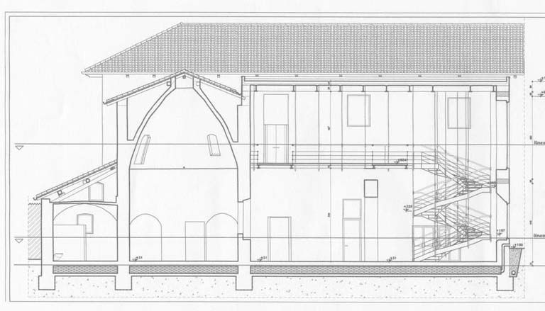 - Coperture: struttura lignea risanata e consolidata mediante capriate metalliche, con manto in tegole di laterizio