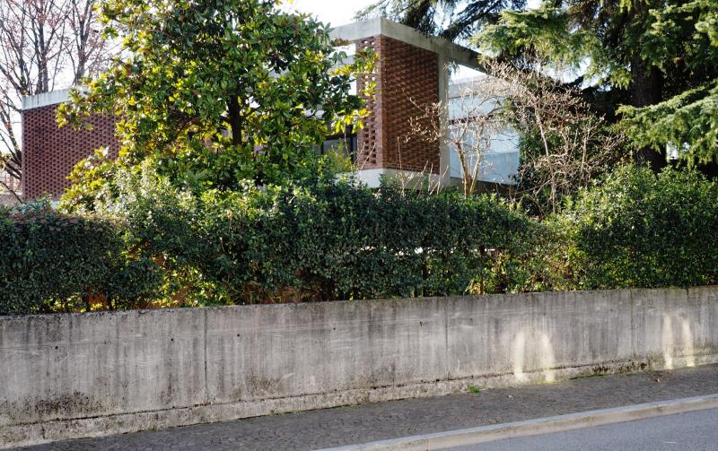 - Materiale di facciata: Parte strutturale in cemento armato e mattoni a vista, tamponamenti intonaco (rosso) o mattoni a vista