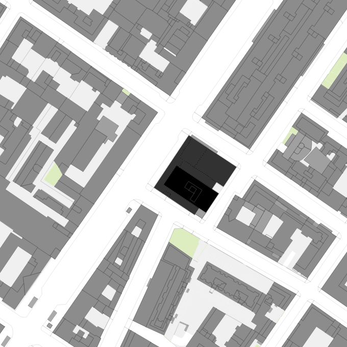 L'edificio, destinato a varie funzioni, è organizzato in due corpi accessibili da ingressi differenziati.