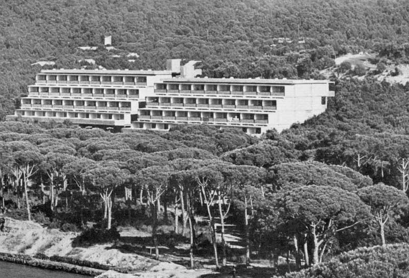 Due blocchi gemelli di cinque piani, leggermente sfalsati, in una struttura per ottanta appartamenti disposti a gradoni in modo che ciascuno possa godere di una terrazza che si affaccia sul mare. Una scala esterna in c.a. a vista e due ascensori servono i piani dove al primo livello si trova anche un ristorante e un supermarket. Le tamponature esterne sono in mattoni a vista come i parapetti delle terrazze realizzati in cotto. Una struttura architettonica energica che riesce comunque a integrarsi con il paesaggio seguendo il naturale declivio del terreno.