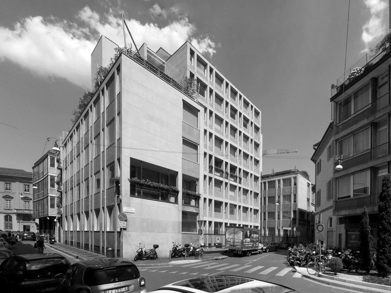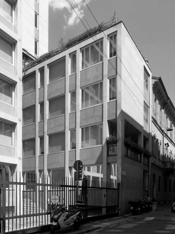 Tra il 1954 e il 1958 l'architetto comasco Pietro Lingeri progetta e costruisce la nuova sede per gli uffici della Società Finanziaria “La Centrale“ in collaborazione con gli ingegneri Casalis, Busca, Bosisio, Maltini e Locatelli. Si tratta di un moderno complesso per uffici, dalla cospicua volumetria e dotato di ampio programma funzionale, aggiornato ai più moderni standard tecnologici dell'epoca e situato in una zona centrale della città, nei pressi di piazza della Scala. L'intervento, per l'intreccio tra poetica razionalista e logica della forma urbana di Milano, presenta molteplici aspetti di interesse: Lingeri - giunto ad una fase matura della sua carriera - affronta il tema senza rinunciare alla propria identità di architetto moderno, approdando ad un esito dotato di notevole chiarezza metodologica.