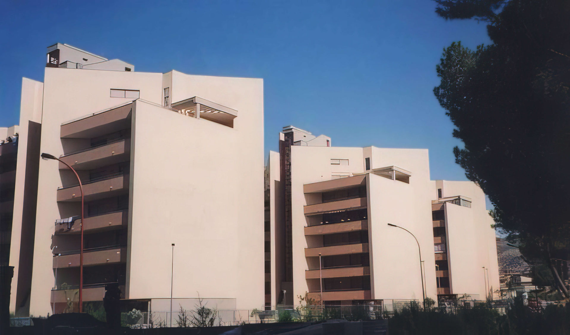 Complesso di edilizia residenziale agevolata costituito da quattro edifici identici realizzati nella parte marginale est dell’area 167 Falciano-Centurano di Caserta. Ciascun edificio consta di un livello interrato, ospitante l’autorimessa, e di sovrastante livello porticato libero, parzialmente interrato rispetto alla quota stradale. Su questi si sviluppano cinque livelli più un attico, tutti a destinazione residenziale.