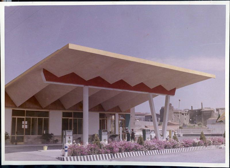 Progettata dall’architetto viterbese Cesarei è modellata sul prototipo della stazione con chiosco e pensilina realizzata nel 1949 per la società di distribuzione carburanti “Aquila“ a sesto San Giovanni (ora demolita) dall’ingegnere Aldo Favini noto per le sue ricerche sulla resistenza per forma. La stazione, che deve avere anche un forte valenza pubblicitaria, è organizzata in un piccolo fabbricato con grandi vetrate, protetto da un’ampia pensilina a protezione delle pompe di benzina e dello spazio necessario al rifornimento.