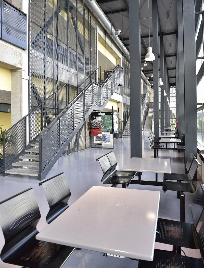 La struttura in calcestruzzo armato, realizzato in opera, del piano seminterrato che ospita un grande garage per auto (superficie di oltre 2500 metri quadrati) sostiene i due livelli superiori, caratterizzati nella parte sud da una struttura in calcestruzzo prefabbricato a telaio e pannelli coibentati a taglio termico (con la presenza di dissipatori sismici opportunamente collocati) e da un telaio in acciaio a vista nella parte nord opportunamente ancorato alla soletta di copertura in calcestruzzo alveolare. Grande attenzione è stata posta al progetto impiantistico e alle problematiche che le aule didattiche e uno spazio vetrato di queste dimensioni pongono sia in estate che in inverno dal punto di vista illuminotecnico, del riscaldamento e del raffrescamento.