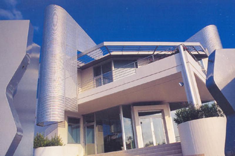 - Materiale di facciata: intonaco; corpi modellati con fasce di acciaio