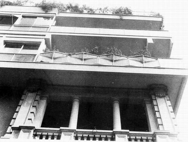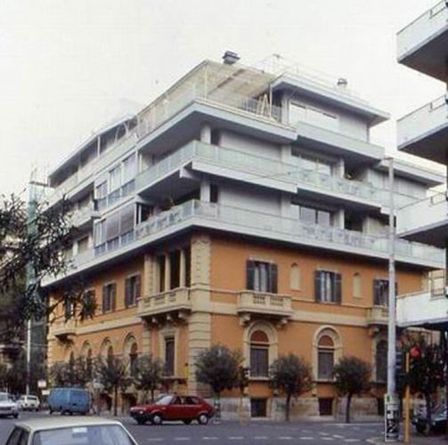 La sopraelevazione aggetta, rispetto alla facciata sottostante, con una balconata continua sui fronti stradali, che alterna campi lisci a fioriere corrugate (una soluzione notevole e tipicamente ridolfiana che anticipa nelle forme quelle della Palazzina Zaccardi del 1954), ingloba i raffinati infissi del giardino d’inverno su via Paisiello ed assorbe gli sfalsamenti tra le tamponature dei vari ambienti, riconducendoli a un prospetto unitario a prevalenza orizzontale, coronato da una copertura di sapore organico. La serie dei contrappunti tra sopraelevazione e basamento viene moltiplicata proprio dai balconi vetrati, episodi particolari che, ricomponendo una volumetria virtuale dell’edificio, permettono di “misurare” le continue variazioni dei paramenti murari di facciata. La qualità architettonica risulta tutta concentrata sull'angolo tra via Paisiello e via Bellini, sviluppando in altezza il tema del vuoto suggerito dalla preesistente loggetta colonnata. Gli incastri delle travi in cemento armato a vista ricordano le case per l'impresa Rech e Festa all'E42, solo arricchite dalle fratture dei cordoli orizzontali e dalla vivacità delle parti metalliche, ringhiere e gazebo.