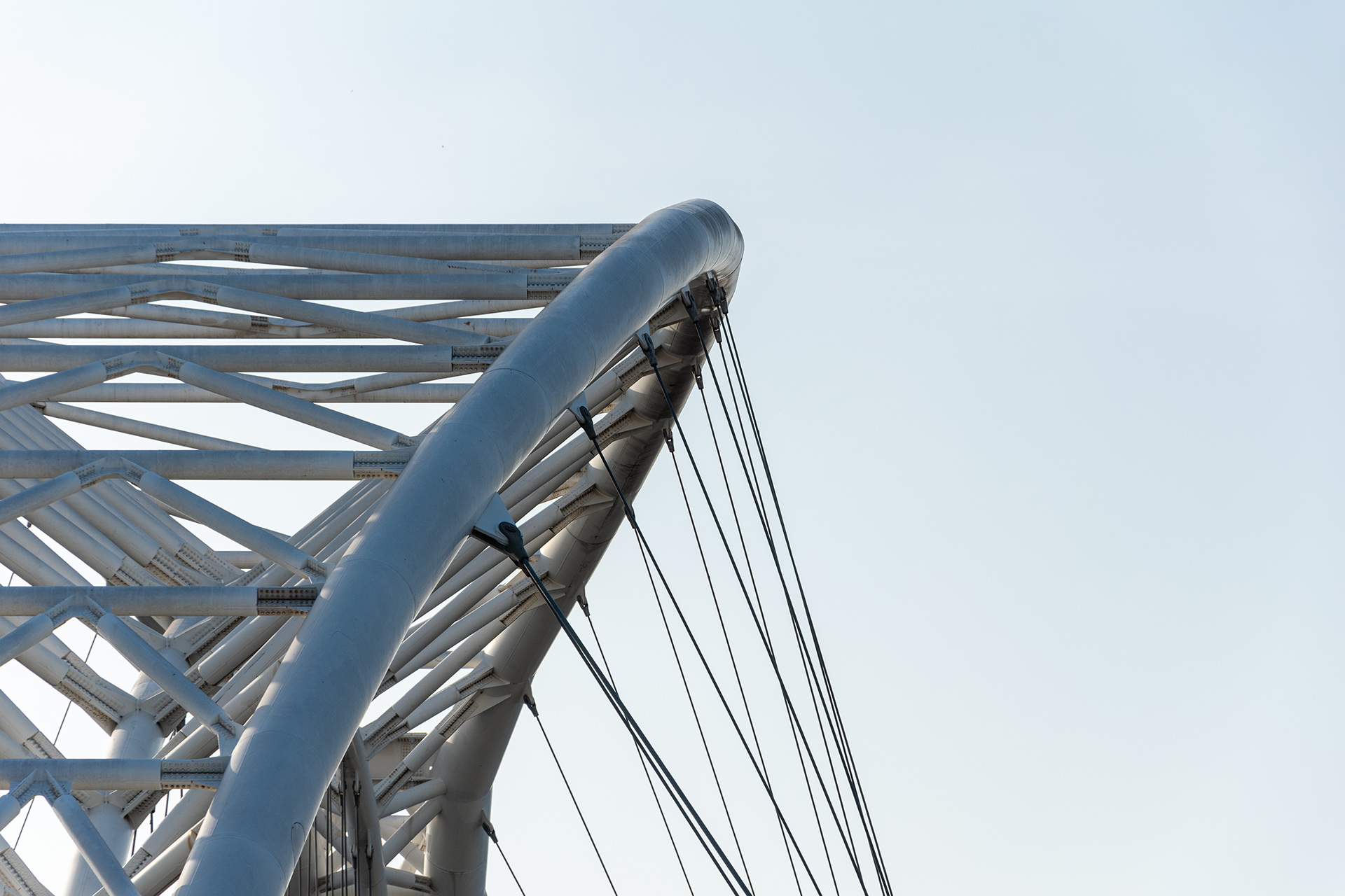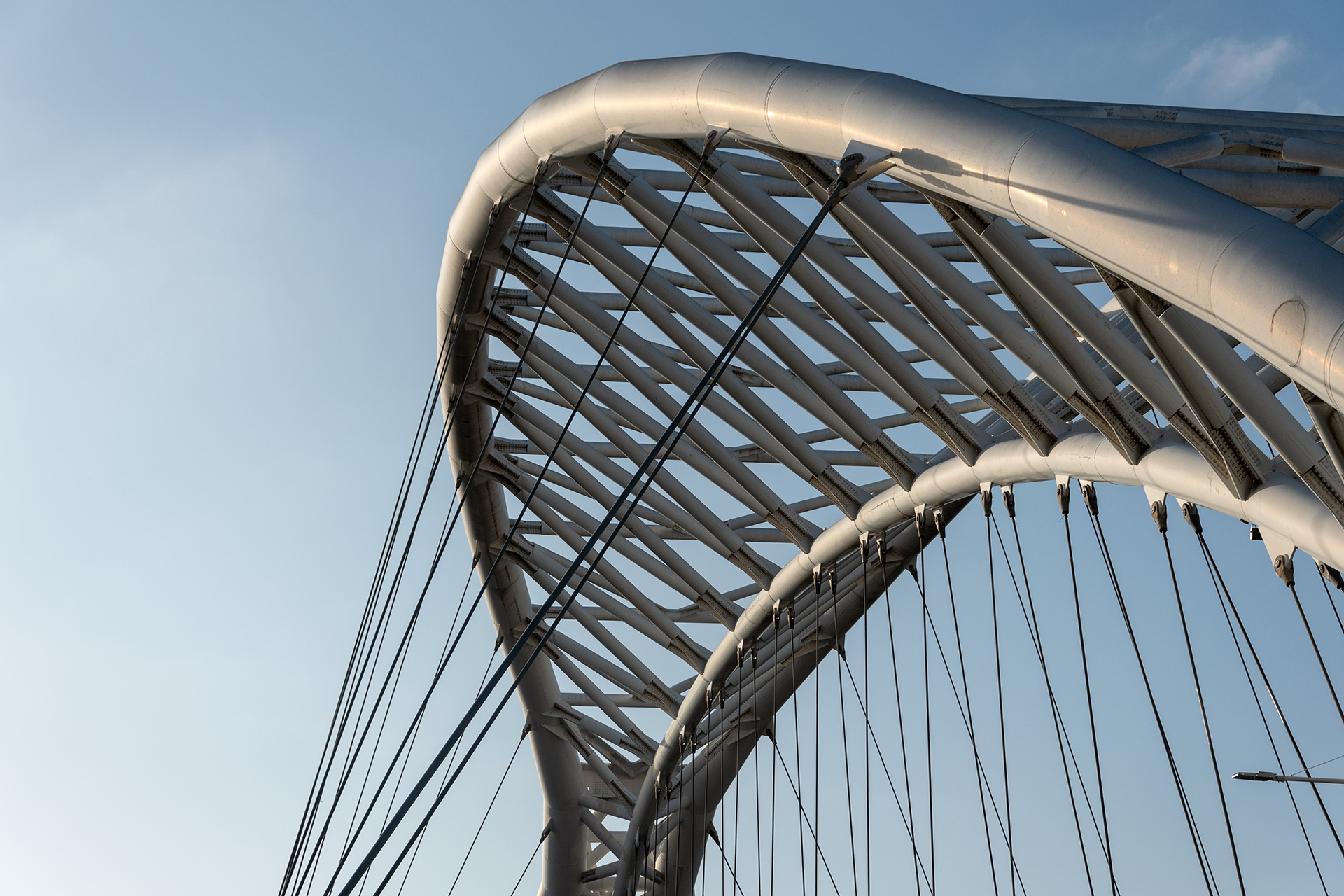 Dimensioni: - lunghezza: 160 m - larghezza: 31,5 m - 40 m - altezza: 36 m arco, 9 m - freccia dell'arco: 42 m - impalcato campate: 19 m + 125 m + 15 m - luce arco: 125 m - stralli: 58 Dati tecnici: - apparecchi d'appoggio: 10 appoggi strutturali a disco elastomerico confinato VASOFLON multidirezionali - dispositivi antisimici: 6 isolatori a scorrimento a superficie piana con Shock Transmitter - giunti di dilatazione: 23 + 23 ml di giunti stradali in gomma armata