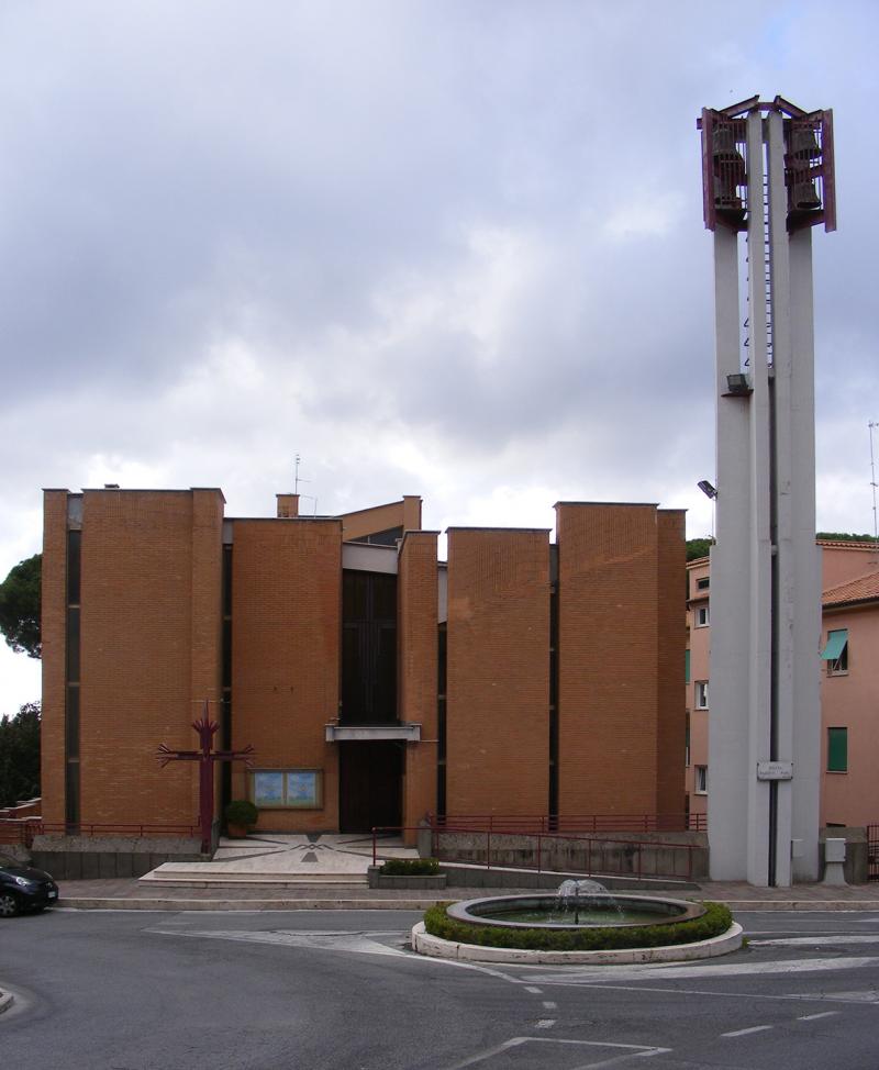 La chiesa, che si affaccia sul parco della Villa Ferraioli al centro di Albano Laziale, ben rappresenta l’originale confronto che Benedetti, docente di storia dell’architettura e progettista, avvia con il tema dell’architettura sacra contemporanea in anni in cui notevole è l’attività progettuale e costruttiva generata in questo ambito legata dal forte rinnovamento liturgico.