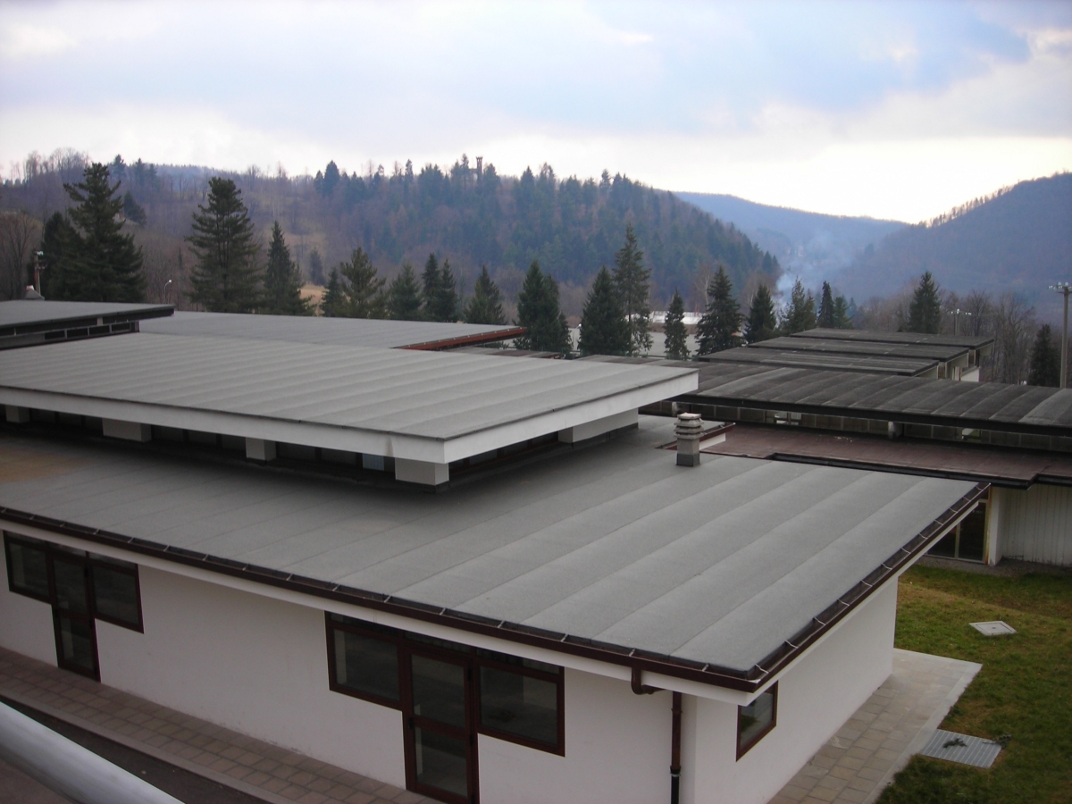 Dal punto di vista strutturale, il complesso originario è realizzato con muri in calcestruzzo a vista, costituiti dall’alternanza di elementi lisci e rigati di colore bianco. Tutta la struttura è votata all’estrema semplicità di forme e materiali, ma allo stesso tempo presenta una forte e consolidata identità. L’edificio dispone di una copertura piana, adeguatamente coibentata e dotata di manto impermeabilizzante.