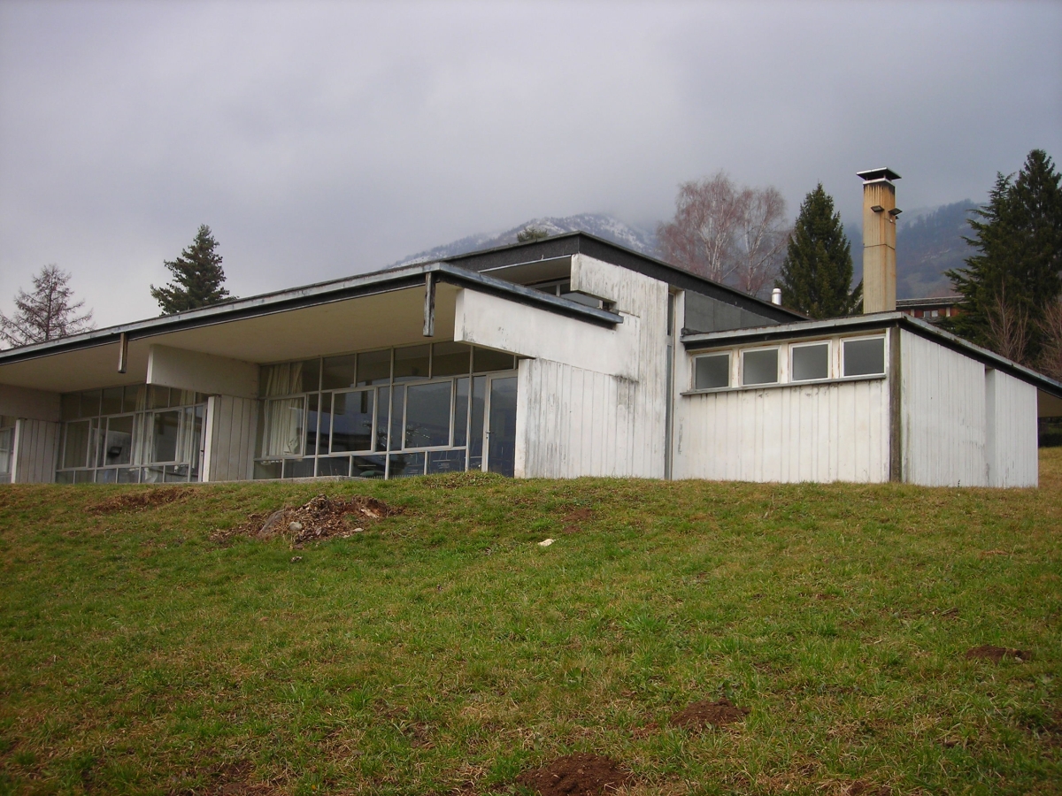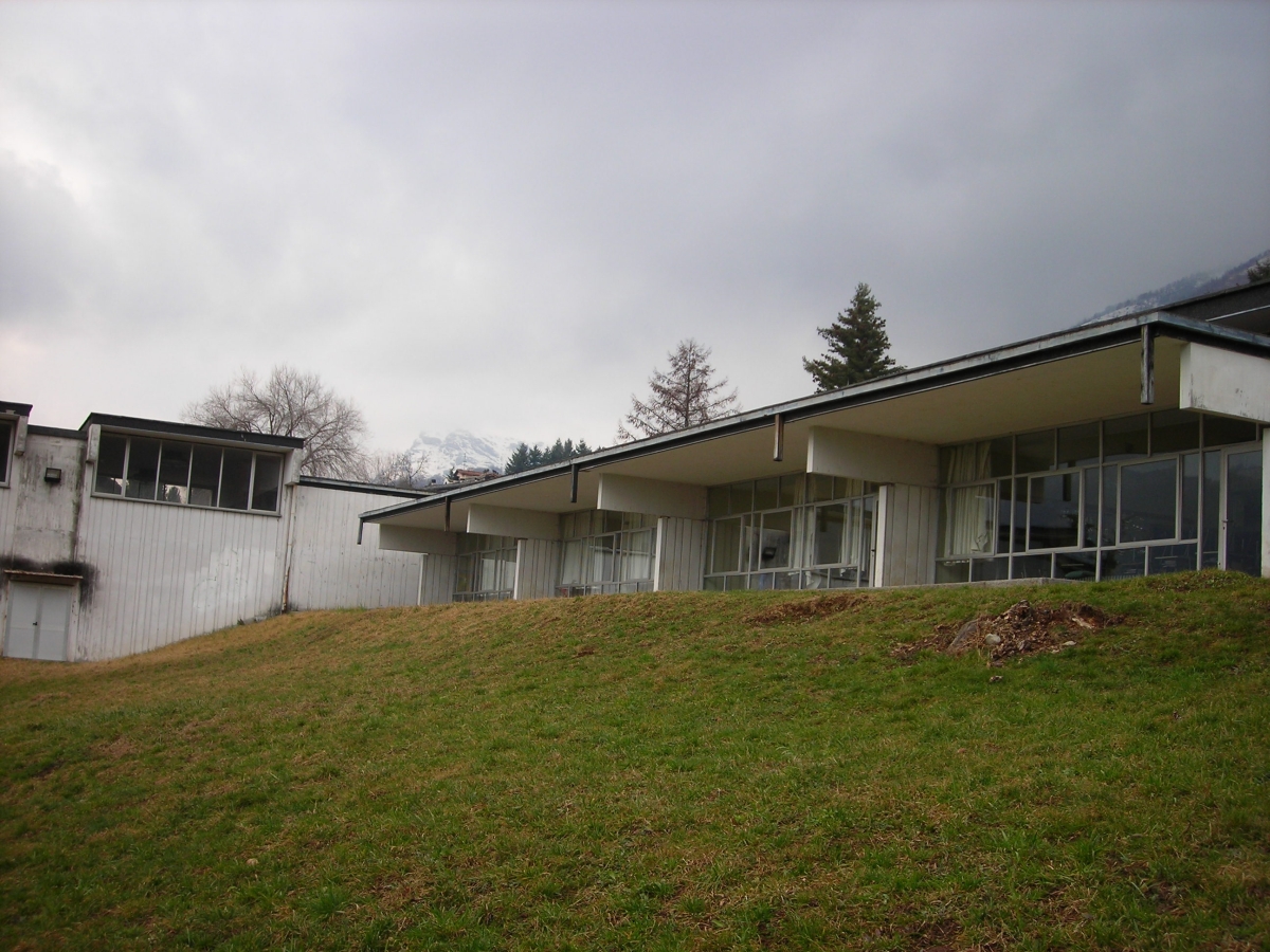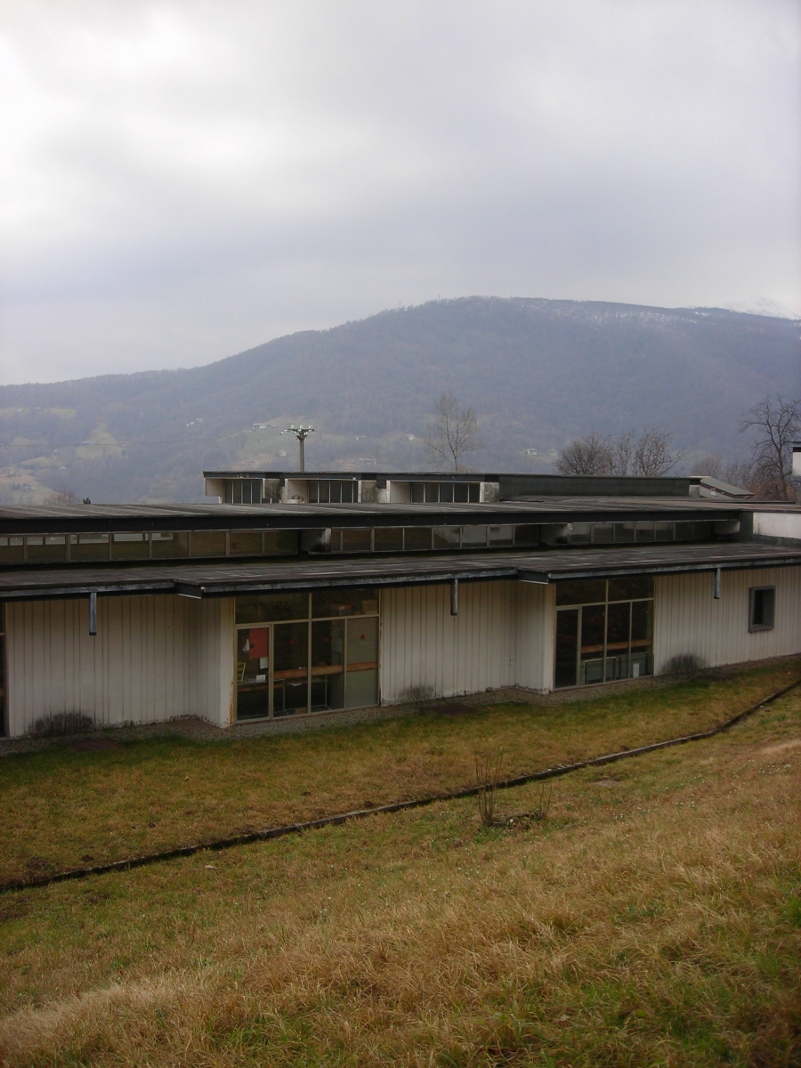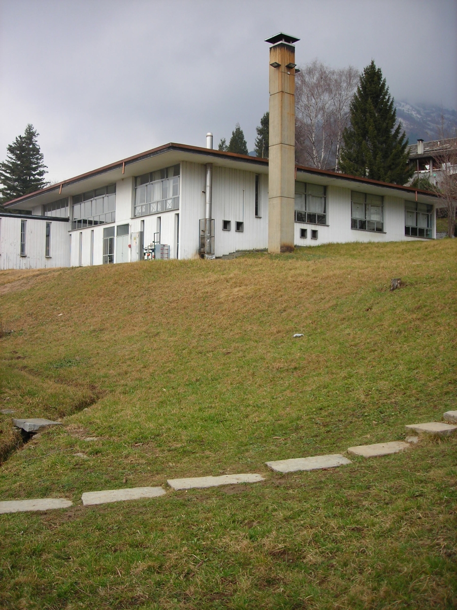 L’edificio non ha subito modifiche significative (all’esterno) rispetto all’impianto originale, eccetto che per la sostituzione - in più fasi - dei serramenti, e per gli adeguamenti impiantistici, che hanno portato alla realizzazione di un nuovo sfiato in acciaio (con scollegamento del camino-torre originario, in calcestruzzo armato). Le coperture sono state in parte rifatte, mantenendo il profilo piano. Inalterato il felicissimo rapporto con il sito in forte pendenza, tuttora caratterizzato da prati ben curati, sentieri e da un’apertura verso il paese non interrotta da recinzioni.