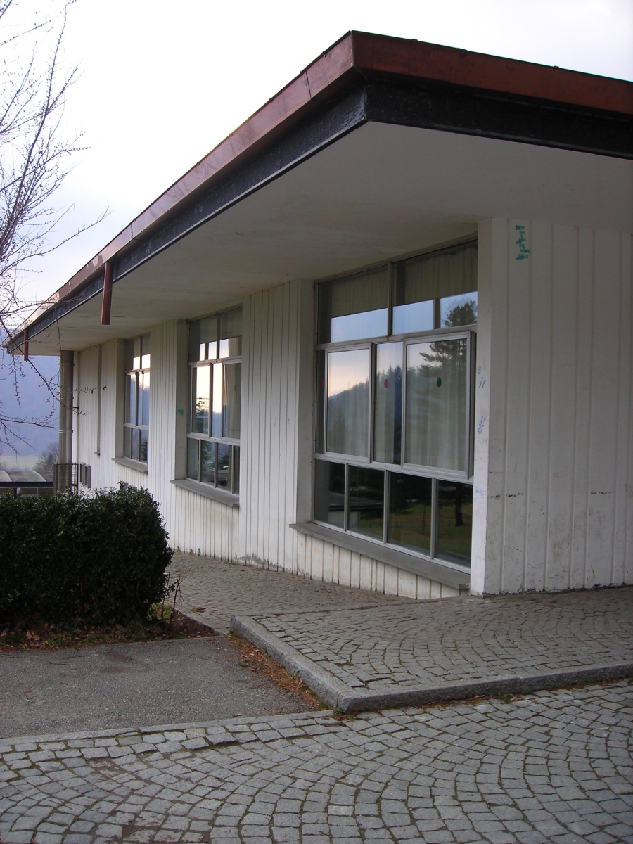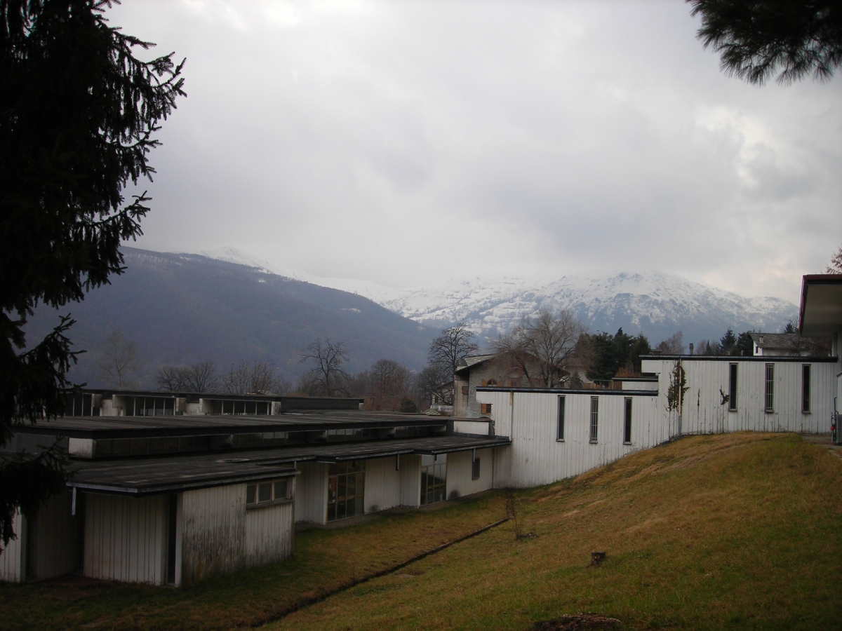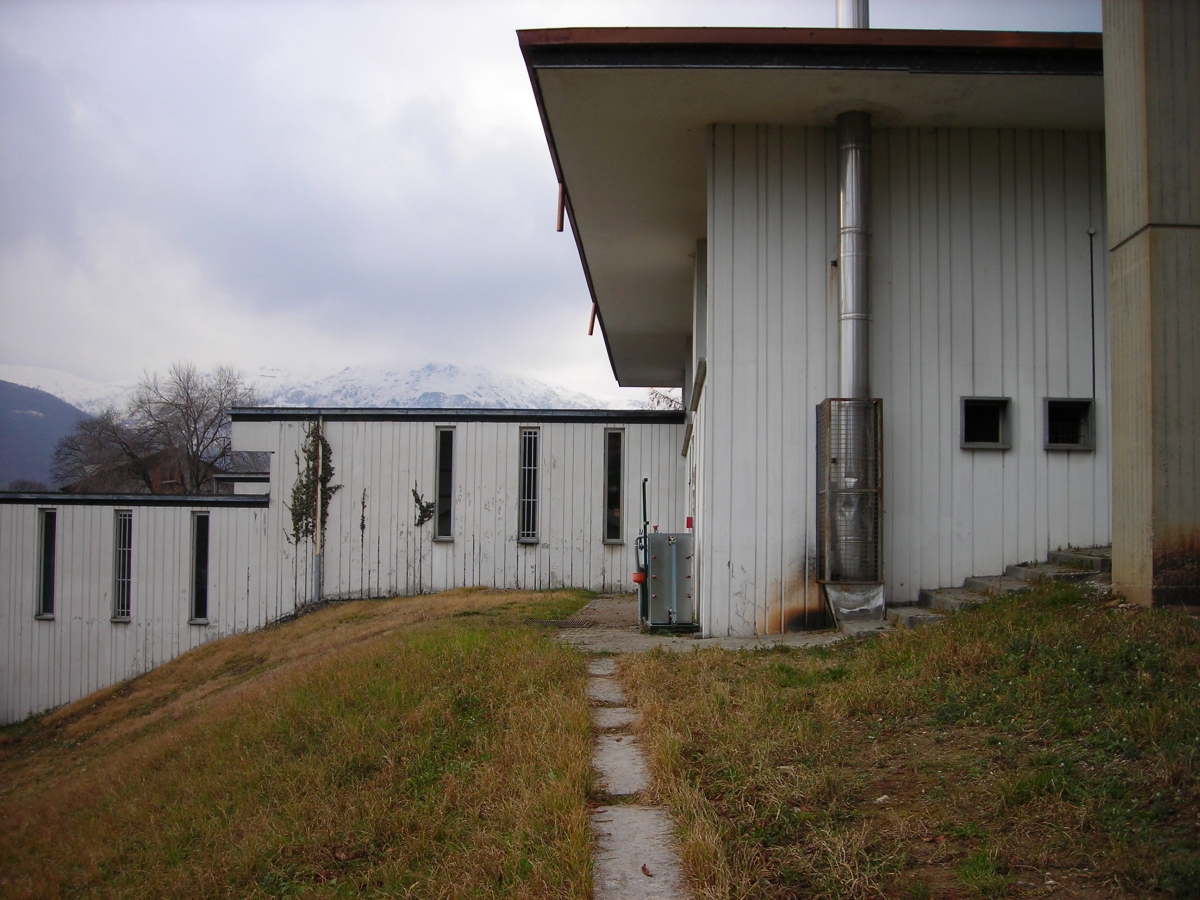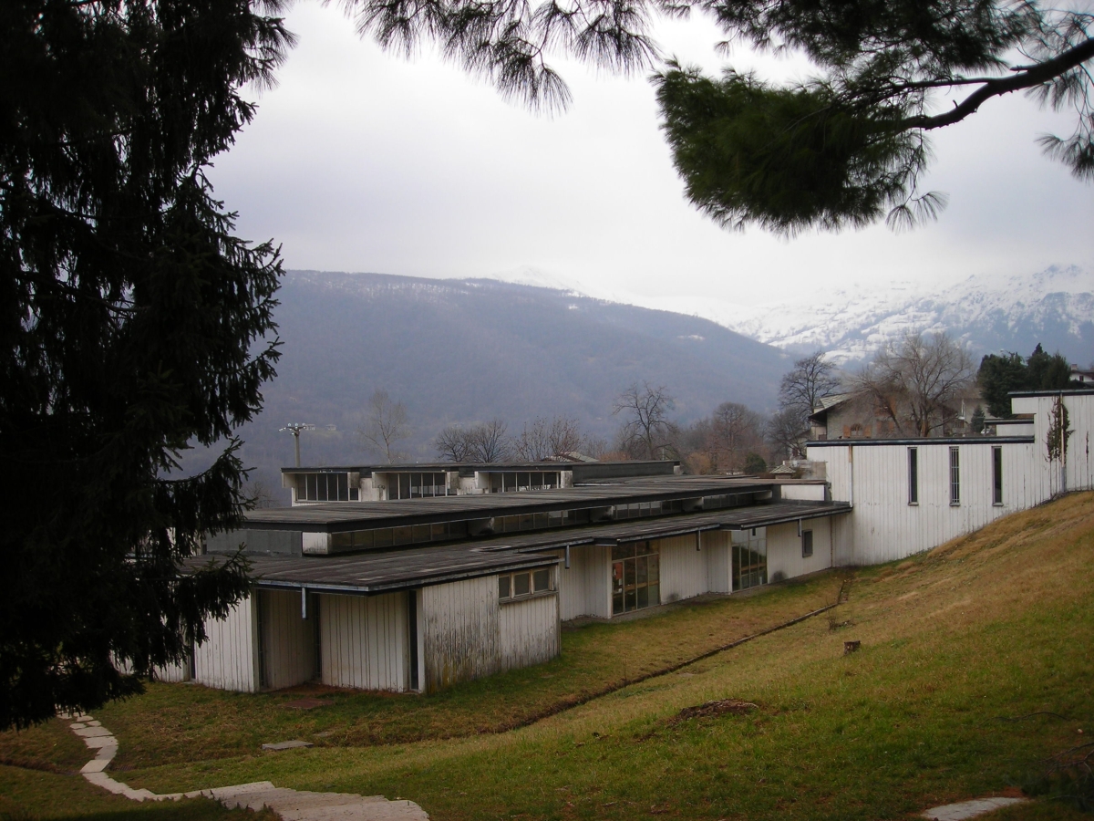 L’edificio non ha subito modifiche significative (all’esterno) rispetto all’impianto originale, eccetto che per la sostituzione - in più fasi - dei serramenti, e per gli adeguamenti impiantistici, che hanno portato alla realizzazione di un nuovo sfiato in acciaio (con scollegamento del camino-torre originario, in calcestruzzo armato). Le coperture sono state in parte rifatte, mantenendo il profilo piano. Inalterato il felicissimo rapporto con il sito in forte pendenza, tuttora caratterizzato da prati ben curati, sentieri e da un’apertura verso il paese non interrotta da recinzioni.
