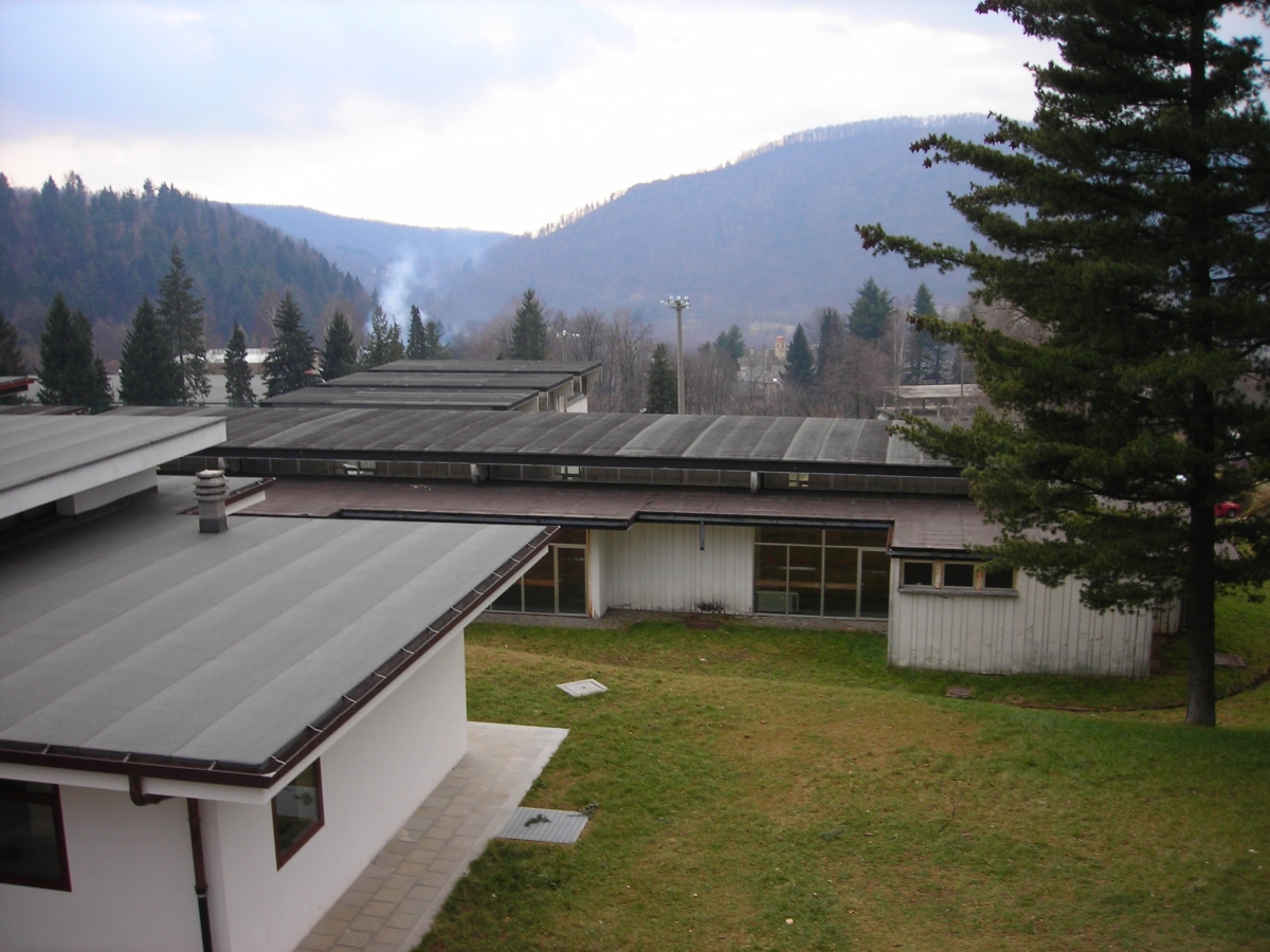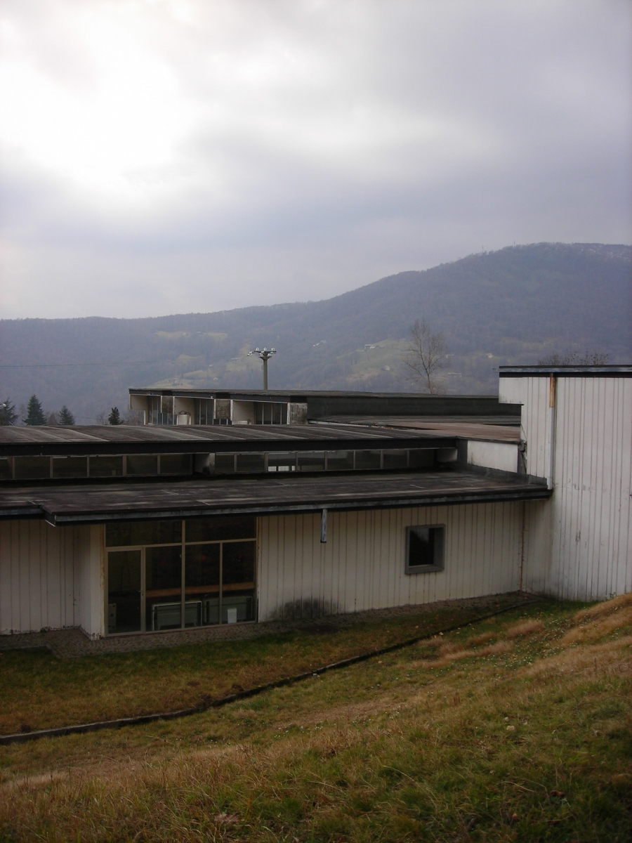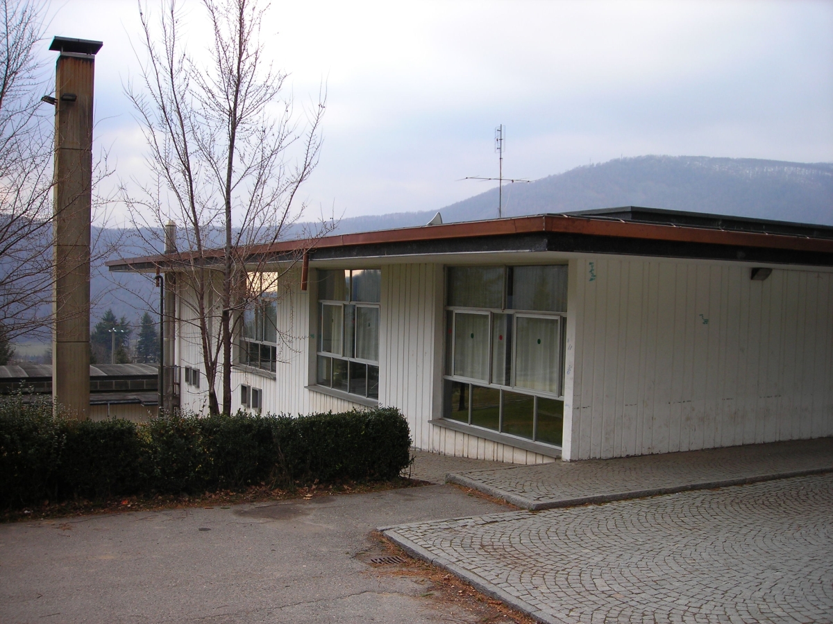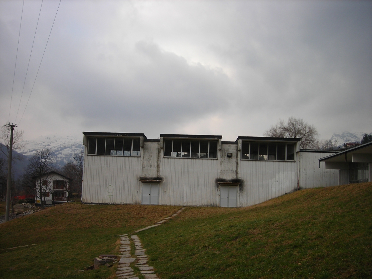 L’edificio non ha subito modifiche significative (all’esterno) rispetto all’impianto originale, eccetto che per la sostituzione - in più fasi - dei serramenti, e per gli adeguamenti impiantistici, che hanno portato alla realizzazione di un nuovo sfiato in acciaio (con scollegamento del camino-torre originario, in calcestruzzo armato). Le coperture sono state in parte rifatte, mantenendo il profilo piano. Inalterato il felicissimo rapporto con il sito in forte pendenza, tuttora caratterizzato da prati ben curati, sentieri e da un’apertura verso il paese non interrotta da recinzioni.