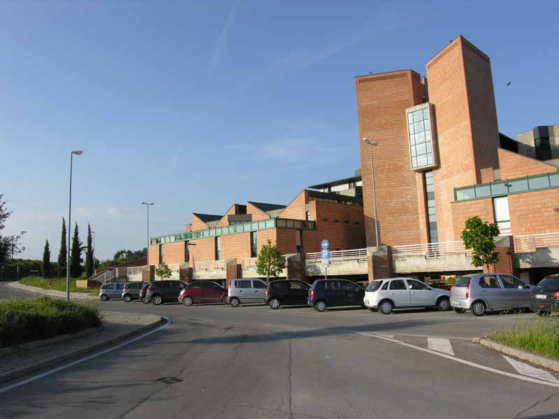 Complesso inserito in sintonia con le qualità ambientali e tipologiche del contesto, ha chiari riferimenti all'architettura del borgo e delle fortificazioni medievali per l'uso diffuso del laterizio e della pietra a vista. Lo sviluppo longitudinale è interrotto dalla verticalità di due torri tagliate da collegamenti orizzontali in cristallo. L'ingresso evidenziato da una leggera pensilina in ferro e vetro conduce a una galleria di spina a doppio volume illuminata dall'alto che distribuisce gli ingressi ai reparti.