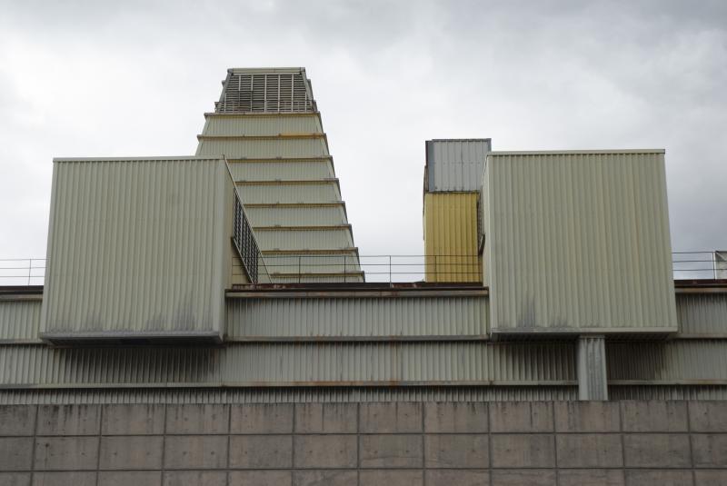 L’edificio ha una forma particolare, esaltata dal rivestimento in pannelli metallici in origine di colore giallo acceso, composta da un volume parallelepipedo di base su cui se ne imposta un altro piramidale alto 40 metri, che contiene gli elementi tecnologici con ingombro maggiore, ossia caldaia e camino principale.