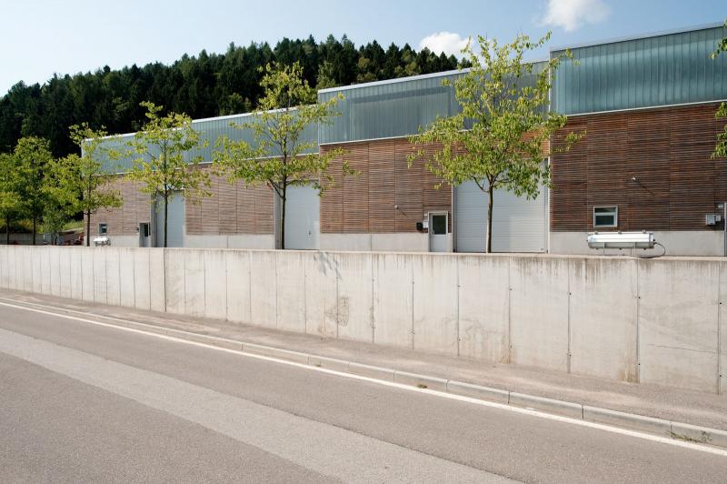 Posto ai limiti del bosco, l'edificio si contraddistingue per discrezione e sobria eleganza. Esso si compone di 6 moduli che si adattano alla morfologia del terreno e alle caratteristiche della campagna circostante. A valle, visibile dalle prospettive più consuete e significative, è collocato, infatti, il fronte principale in cui sono situati gli ingressi ed i parcheggi, mentre a monte, sul versante boscato, ci sono i depositi, incassati nel terreno e praticamente invisibili. All'articolazione delle masse corrisponde la tripartizione in alzato di fronti risolti privilegiando l'uso del legno, del cemento armato basamentale e del vetro che concentra le aperture a coronamento delle facciate.