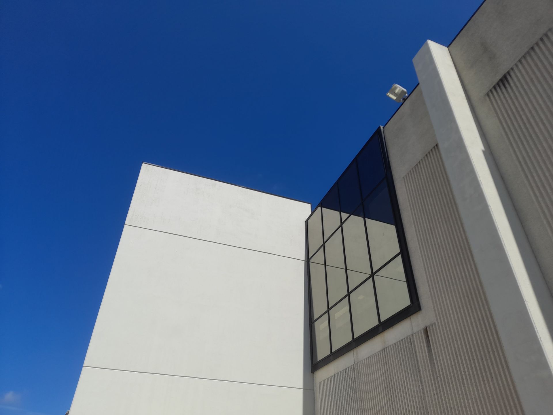 La necessità di avere per le zone interne di carico una buona illuminazione naturale, tale da ridurre al minimo l’utilizzo di un sistema di illuminazione artificiale, che avrebbe potuto creare problemi di riscaldamento della galleria, essendo questa a temperatura controllata, ha spinto ad adottare soluzioni architettoniche quali pannelli prefabbricati in cls per la parte inferiore, mentre l’estremità superiore è chiusa con una cosiddetta parete continua, costituita da montanti e traversi in metallo e vetri atermici a bassa conducibilità. L’idea di “scatola trasparente” del progettista è stato poi estesa nel corpo semicircolare del complesso edilizio, questa però è interamente avvolta da ampie lastre di cristallo delimitate sempre da strutture di metallo.