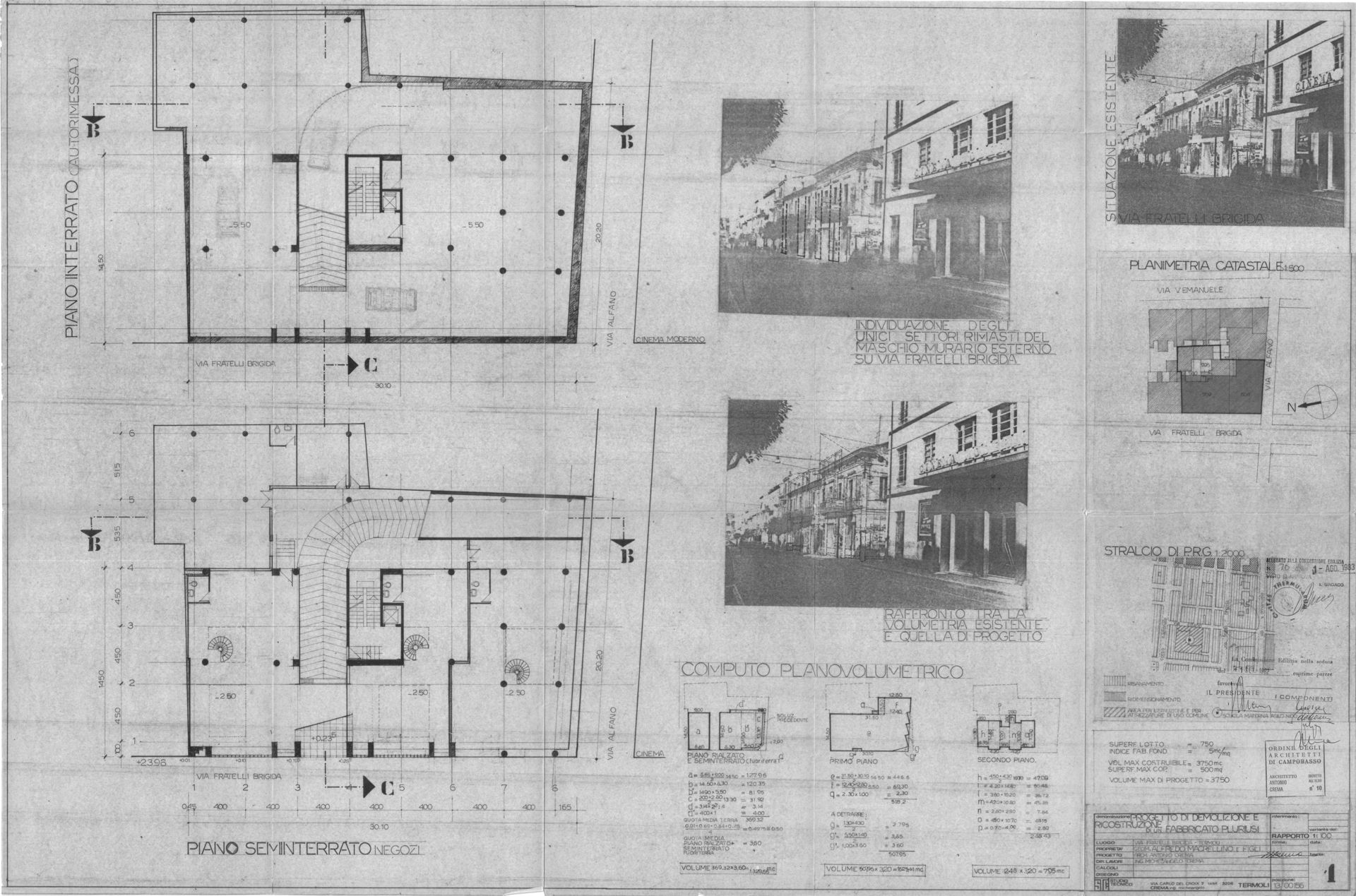 Nel nuovo complesso edilizio sono stati ricavati: un piano completamente “interrato” destinato a garage che impiega l’intera area disponibile; un piano seminterrato per sottonegozi e depositi commerciali; un piano rialzato, in due blocchi separati e delimitati dalle due vie pubbliche (Alfano e F.lli Brigida) e da due accessi pedonali e dalla rampa veicolare di accesso al garages, in cui sono insediati tre negozi; un primo piano dove sono stai sistemati ambienti per uffici; un secondo piano, completamente “a ritiro” rispetto ai fronti stradali, in cui sono state ricavate delle abitazioni. Dal punto di vista formale l’interesse riguarda il rapporto particolarmente dinamico tra pieni e vuoti, la variazione tra superfici opache e vetrate su tutti i livelli dell’edificio, la soluzione d’angolo tra le due vie di affaccio, che ne attestano chiaramente il personale linguaggio progettuale dell’autore, coerente e rintracciabile in tutte le sue opere.