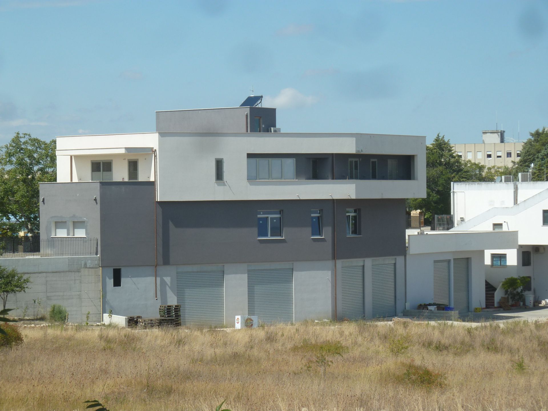 L’edificio in questione è stato realizzato su progetto dell’Arch. Leonardo Bellotti e dell’Ing. Alfonso Scardera intorno al 2009, ponendosi come terminale di un complesso edilizio realizzato dal committente in più fasi e collocato nella parte residuale di un lotto di forma approssimativamente trapezoidale. La configurazione del lotto ha di fatto fortemente influenzato la forma dell’edificio che ad esso si è sostanzialmente adeguato. Tale edificio oltre a soddisfare le esigenze funzionali del committente, giustifica la sua presenza quale testata architettonica, si spera qualificante, dell’intero complesso precedentemente realizzato. L’area è posta ai margini della zona artigianale della città, priva di un organico disegno urbano. La sua connotazione volumetrica si articola secondo una composizione che tende a distinguere il piano residenziale da quelli inferiori, che accolgono altre funzioni. Inizialmente il piano terra doveva svolgere attività commerciali ed il piano primo essere suddiviso in due appartamenti; sopraggiunte nuove esigenze hanno determinato la scelta di adibire il piano terra a locali di servizio (garage e deposito) dell’unico appartamento, mentre il piano seminterrato è utilizzato come rimessa mezzi dell’attività commerciale che si svolge nei locali limitrofi. Il piano coperture è a tipologia piana, accessibile direttamente attraverso il vano scala. Il linguaggio architettonico si rifà ad alcune ricerche contemporanee, volte ad una rivisitazione del razionalismo ma con maggiore sensibilità nei confronti del contesto locale. Una particolare attenzione viene posta nell’ articolazione plastica dei volumi e del rapporto tra pieni e vuoti, in cui le zone d’ombra partecipano alla composizione delle superfici. Questi vuoti, mai fini a se stessi, sono funzionali alla realizzazione di spazi aperti che creano visuali privilegiate verso l’ambiente circostante che ad est spaziano fino al mare.