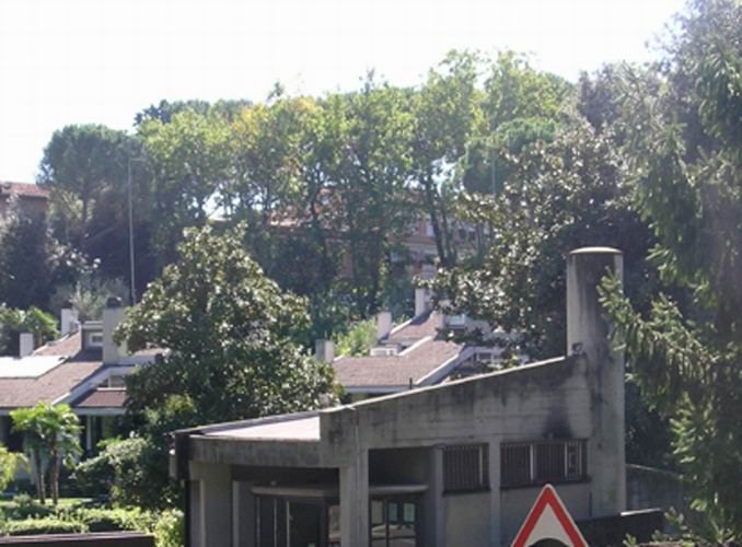 L’intervento di Matteo Piccioni, sito in via dei Colli della Farnesina, dispone dieci case unifamiliari con alcuni servizi comuni nella zona di Monte Mario alto nel punto in cui via della Camilluccia, proveniente dalla Cassia, si congiunge con via della Farnesina, proveniente dalla zona bassa del Foro Italico. Si tratta di un terreno accidentato e scosceso che si affaccia sul panorama dell’ansa del fiume Tevere, prima di Ponte Milvio, e guarda verso la pianura dell’Acqua Acetosa, in un tratto in cui la componente ambientale è ancora abbondantemente tutelata.