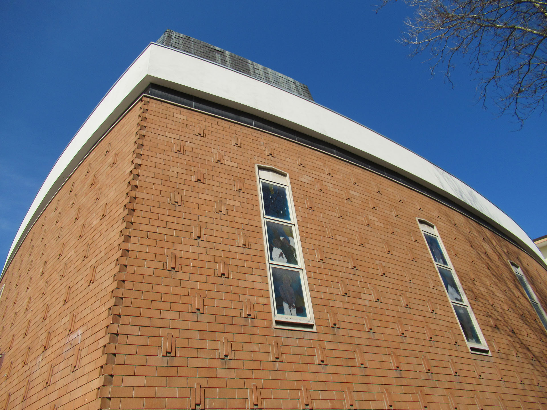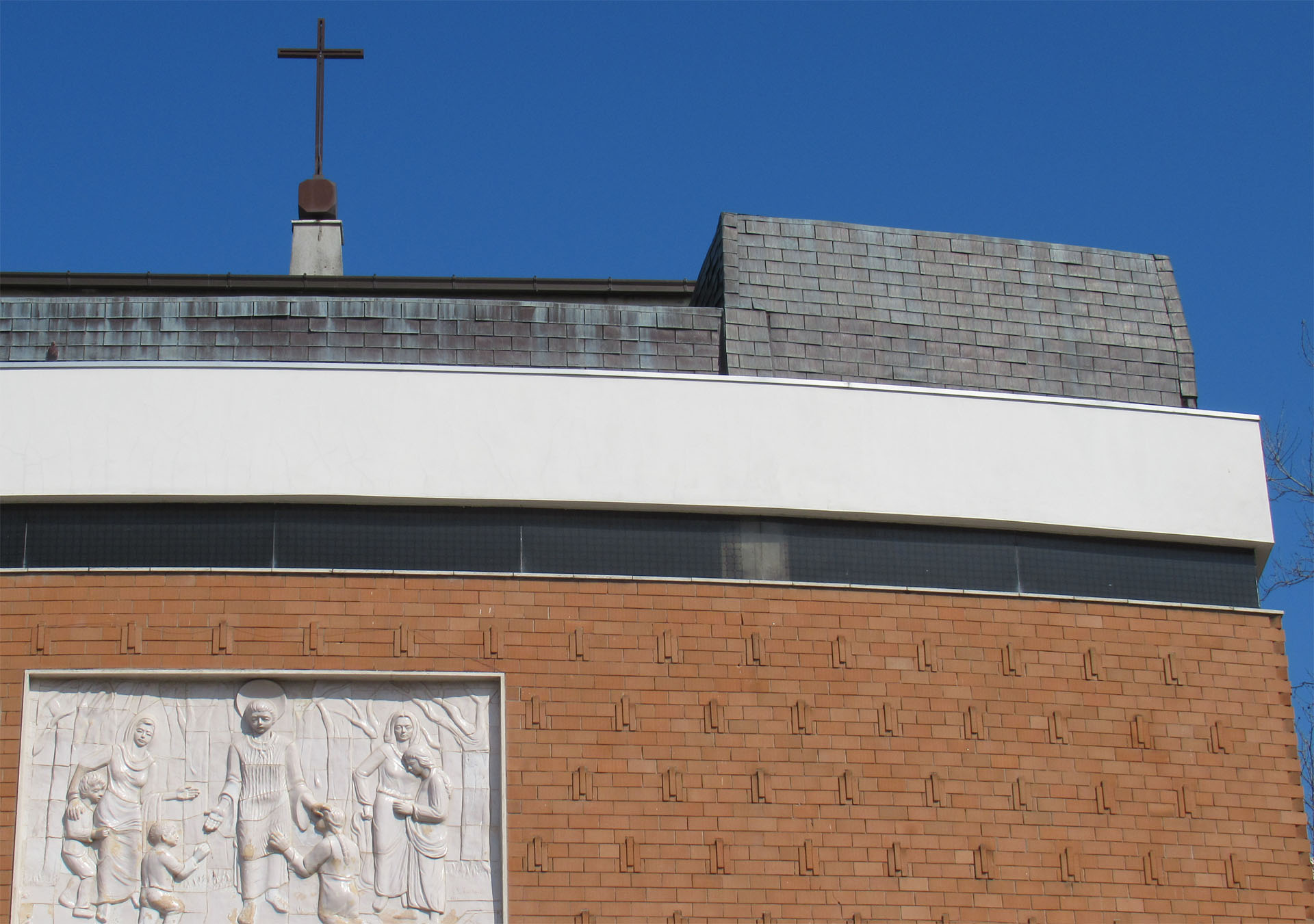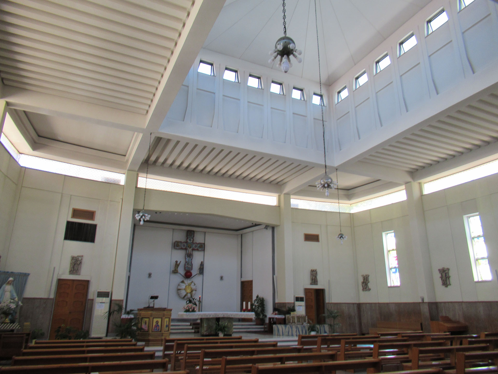 La chiesa si presenta con un volume parallelepipedo principale connotato da una chiusura verticale opaca in mattoni faccia a vista, con elementi decorativi estradossati. Su questa "scatola" sono sovrapposte due nastri, il primo vetrato, che permette di intravedere la struttura retrostante e uno opaco, intonacato bianco, che marca l'inizio della corpertura. All'interno la struttura è estradossatsa e portata a vista in tutti gli elementi costruttivi, la pianta a croce greca viene segnata dagli elementi strutturali che sottolineano i due assi principali della chiesa. Nel centro il solaio di copertura si alza per costruire una generosa lanterna.