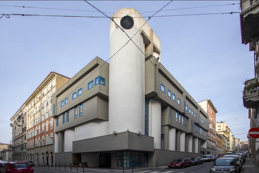La chiesa di Santa Teresa è una delle numerose architetture realizzate dallo studio Celli – Tognon a Trieste. Situata in posizione angolare all’interno di uno dei grossi isolato urbani che caratterizzano la zona di costruzione tardo settecentesca denominata Borgo Franceschino. La disponibilità di un lotto in posizione angolare suggerisce ai progettisti numerosi stimoli, contrariamente il contesto urbano circostante costituito da edifici residenziali ottocenteschi è dagli stessi quasi totalmente ignorato. L’edificio ospita, oltre all’aula liturgica una cripta e le opere parrocchiali per uno sviluppo complessivo di quattro livelli fuori terra e uno interrato. Gli elementi che compongono l’edificio sono estratti dai diversi riferimenti spesso utilizzati dai progettisti le cui professionalità spaziano dal design all’urbanistica ella scultura.