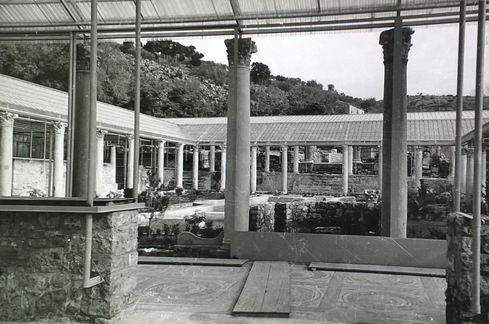 | Protezione dei mosaici pavimentali della Villa romana del Casale in Piazza Armerina (Enna) | Franco Minissi | Archivio della biblioteca dell’ICCROM, Roma | Documentazione fotografica |