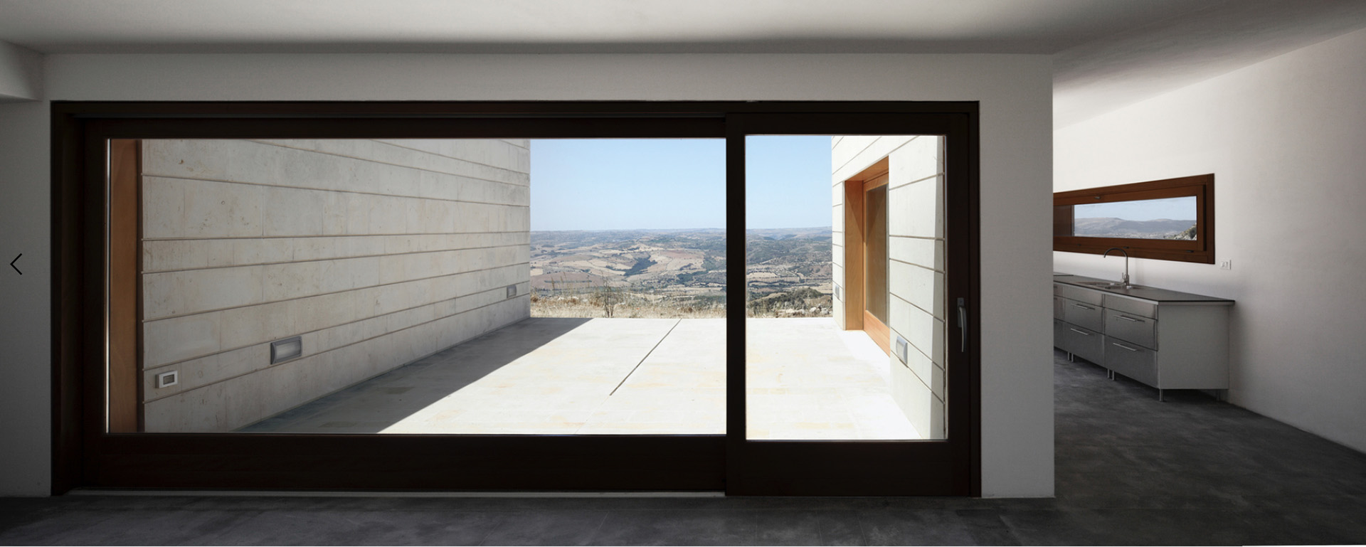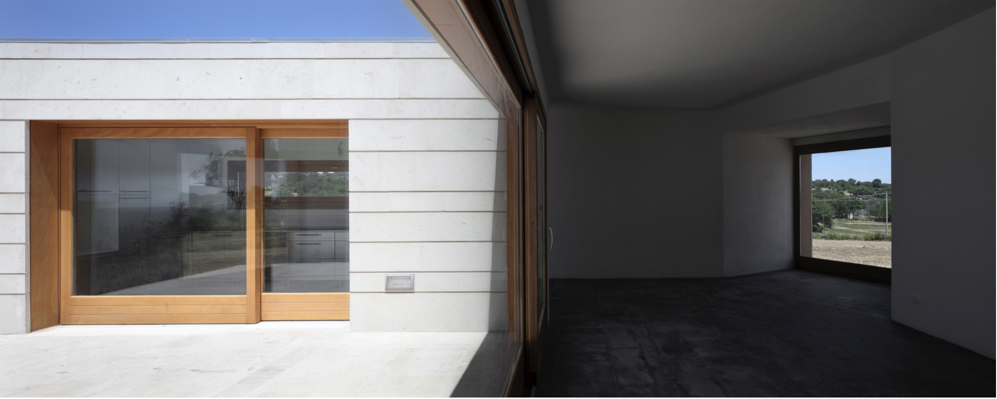 Percorrendo l’interno della casa si vede come le aperture descrivano sequenze e traguardi visivi che accolgono o delimitano la vista del paesaggio, definendo la graduale transizione dallo spazio interno alla natura circostante.