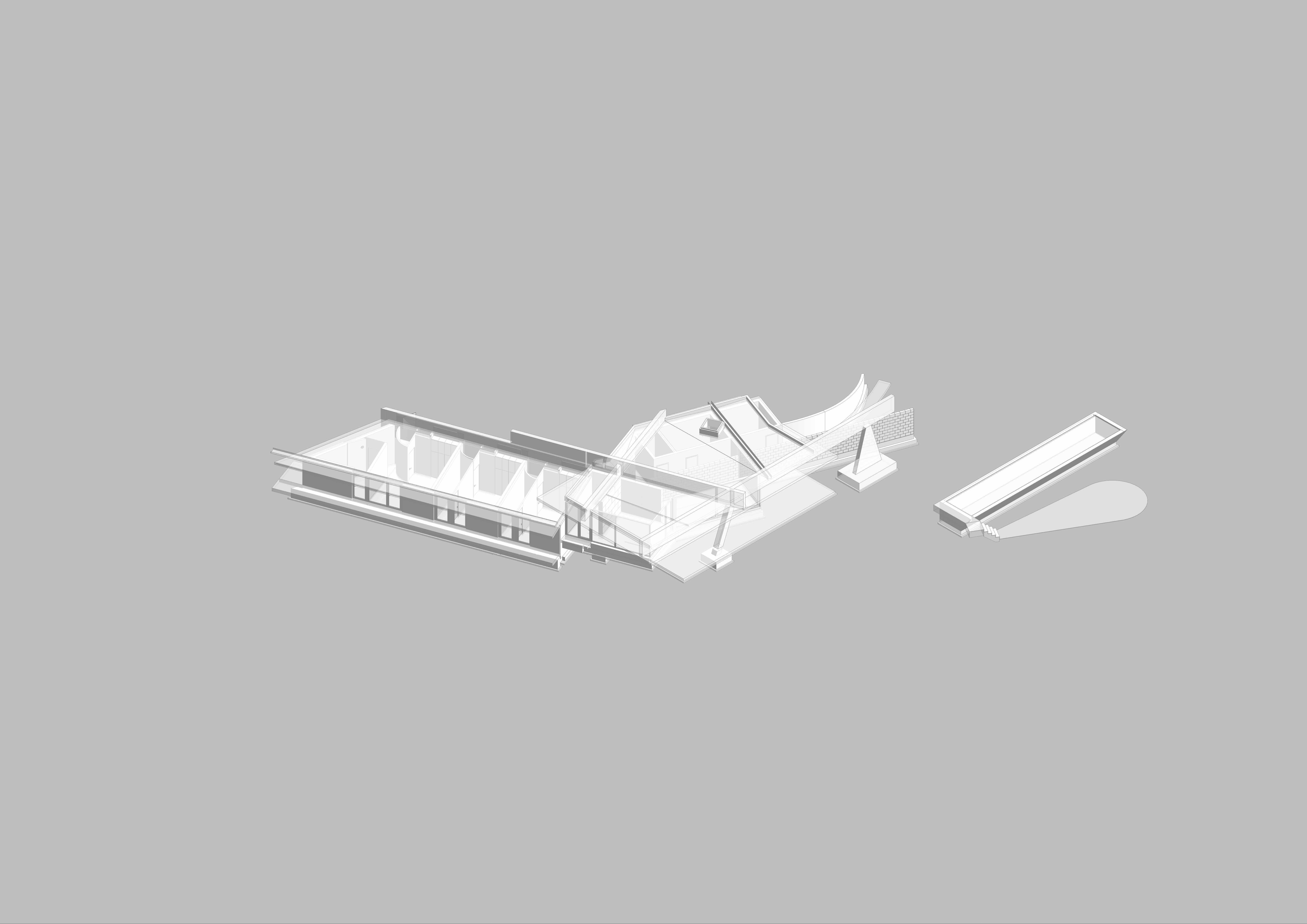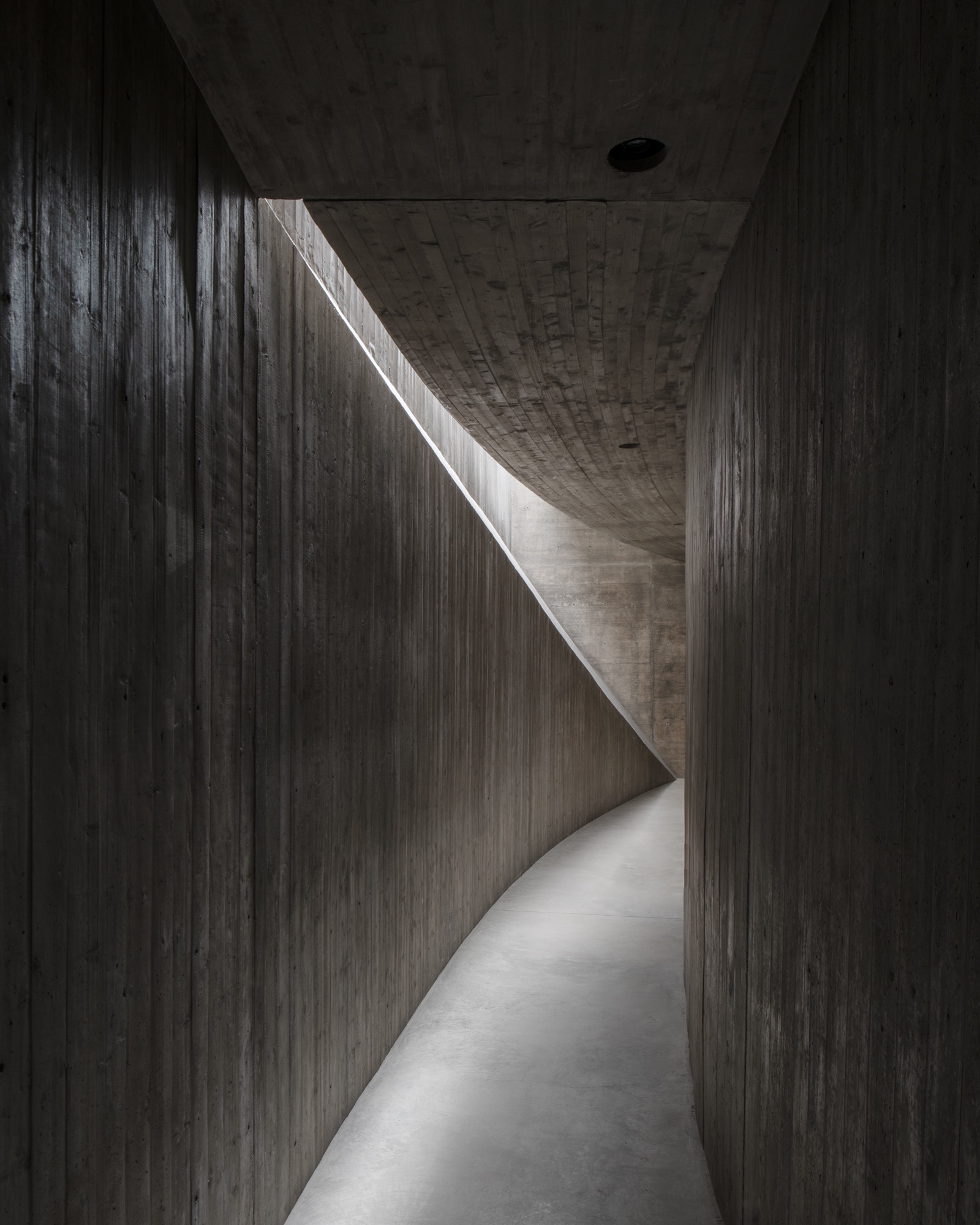 La casa RP02 propone un approccio diverso: lascia affondare nel pendio lo spazio privato della zona notte e lo collega, tramite un lungo percorso curvo e in pendio, alla zona giorno. Una trave-piscina in acciaio, rivestita in pietra di Modica, sovrasta la struttura e poggia su un sistema sempre in blocchi di pietra di Modica, ma questa volta armati e utilizzati con funzione portante. La casa ribadisce un altro degli aspetti distintivi della pratica progettuale di Fondamenta: una continua sperimentazione strutturale fondata anche sul dialogo con l’ingegnere strutturista Antonio Capsoni.